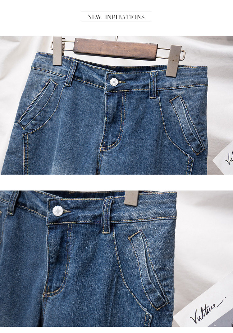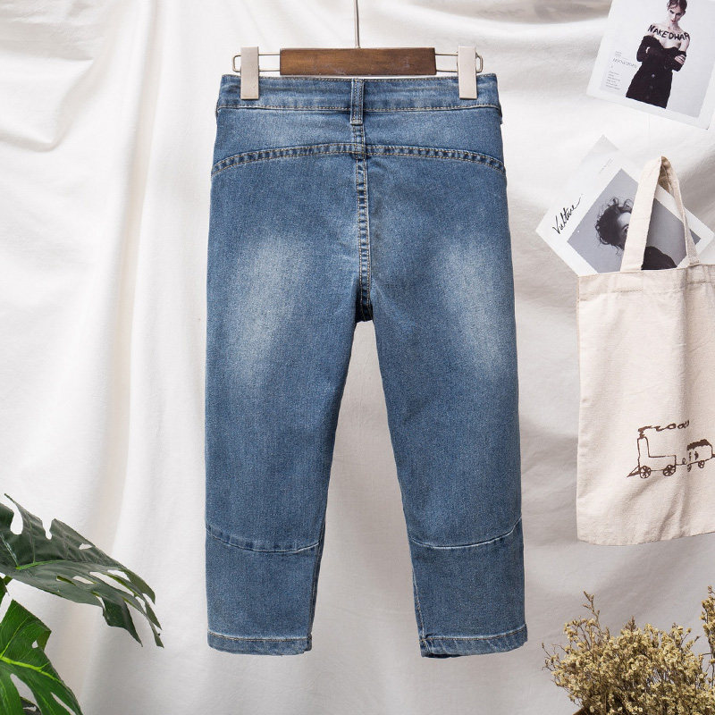 Летние джинсовые эластичные штаны, большой размер, подходит для полных девушек, высокая талия