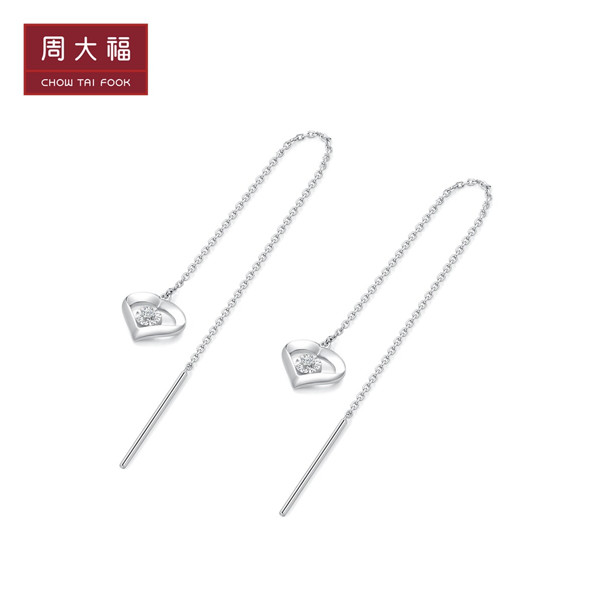 周大福 Платиновые серьги в форме сердца, платина 950 пробы