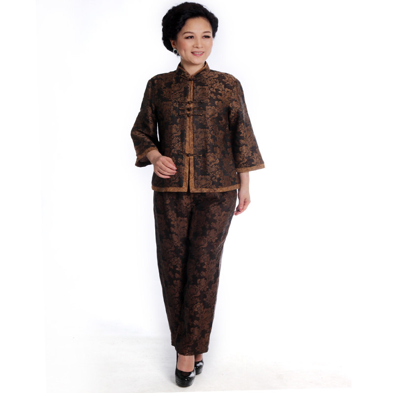 | Цвет: | Темно-коричневый костюм с крупными пионами и рукавами три четверти |