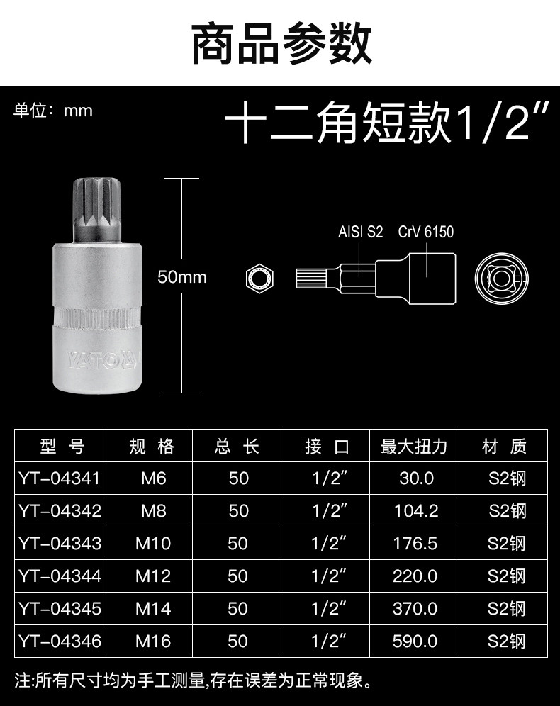- YT-04344 M12X50MM