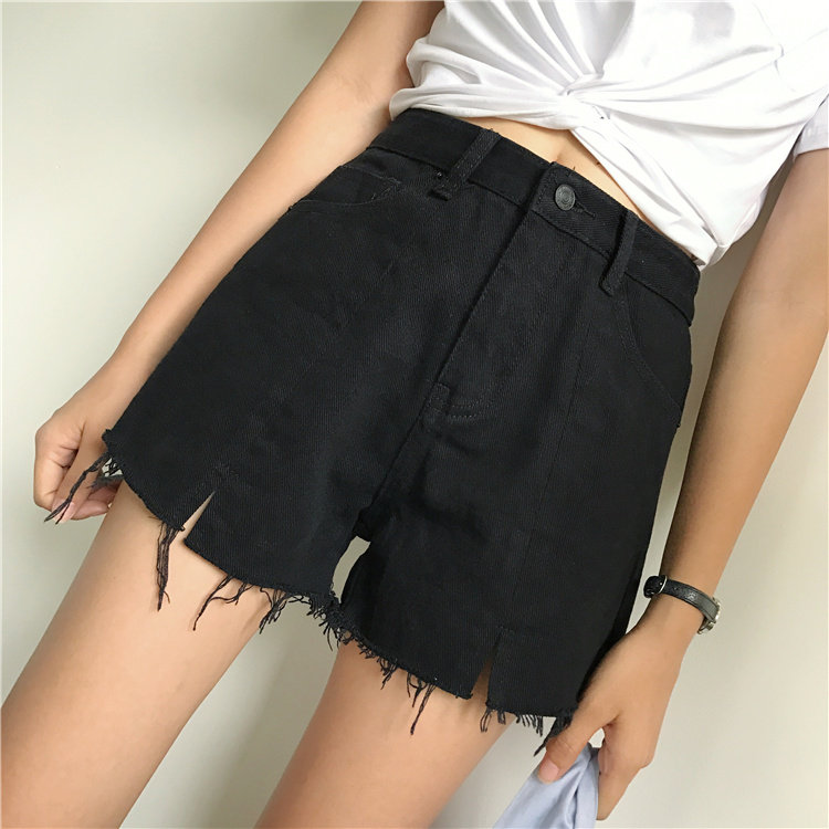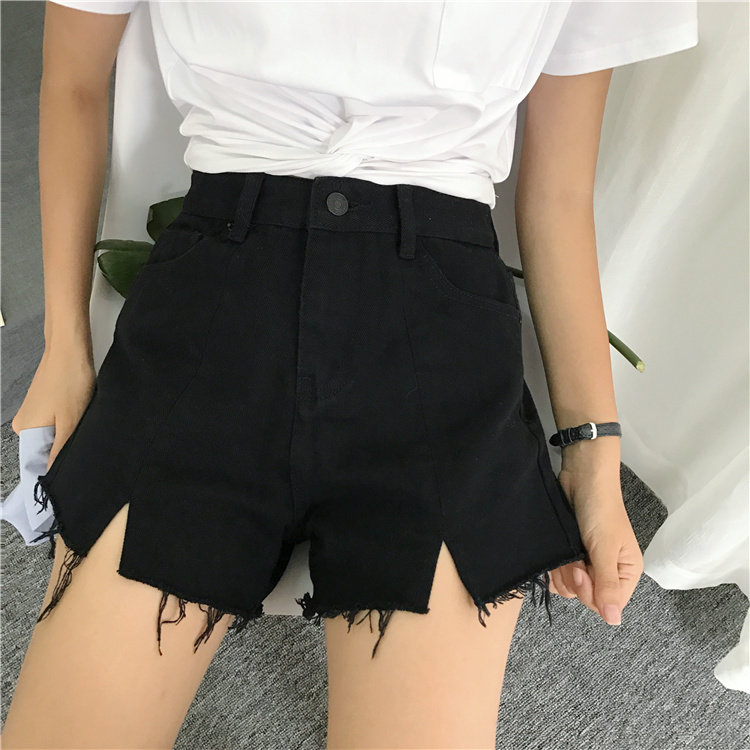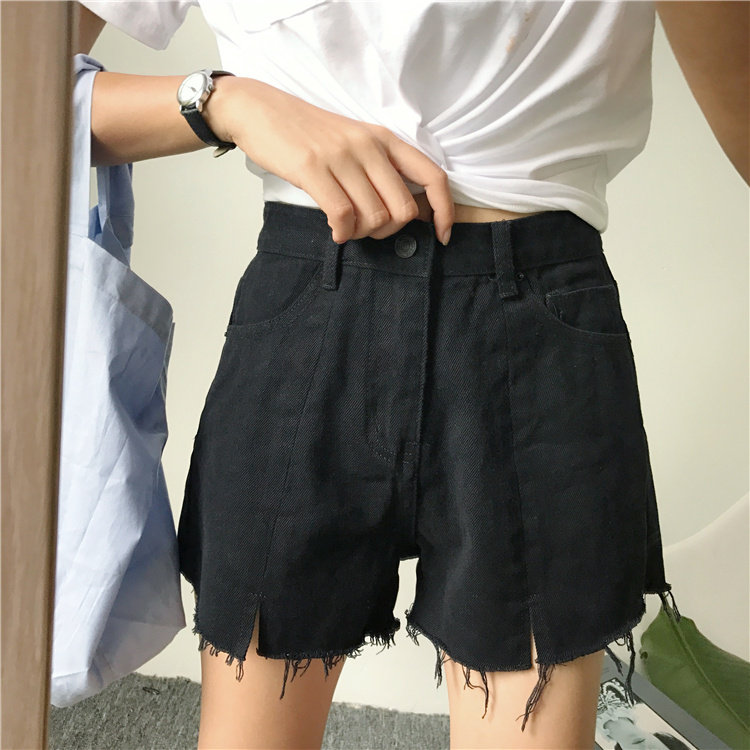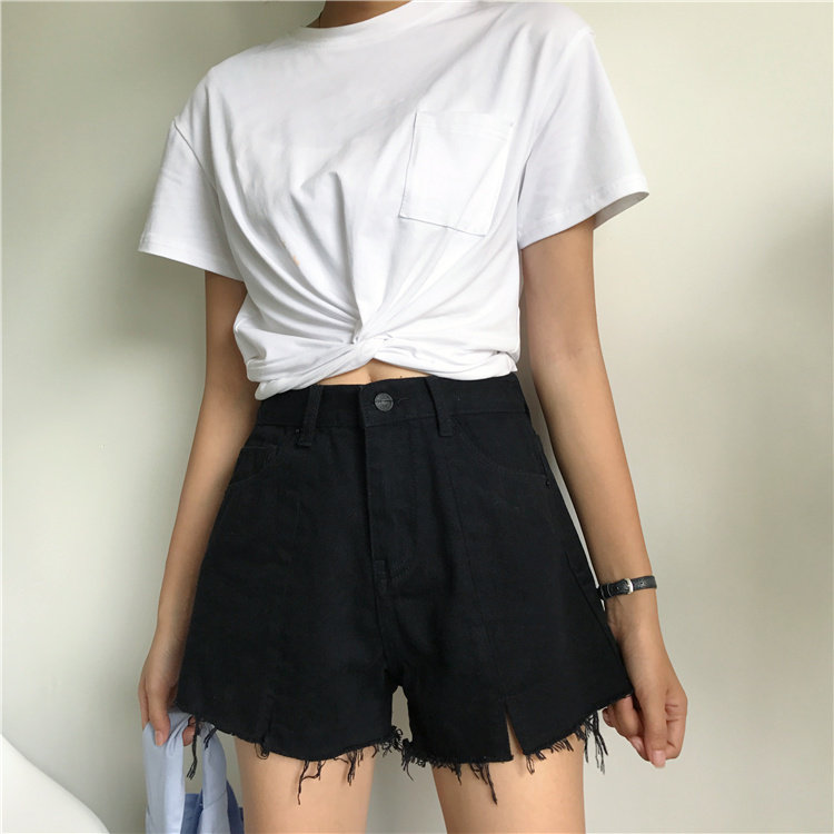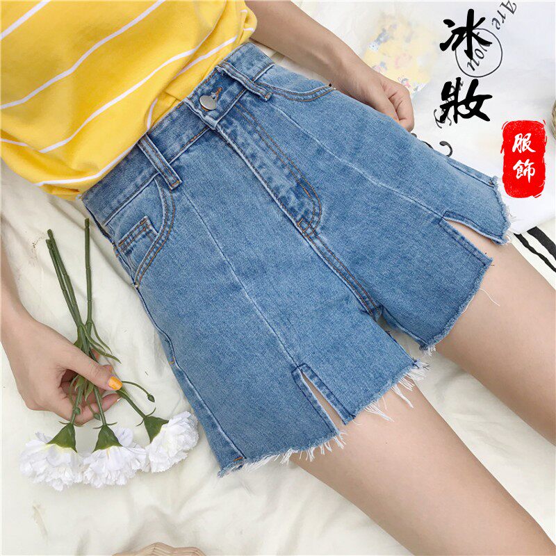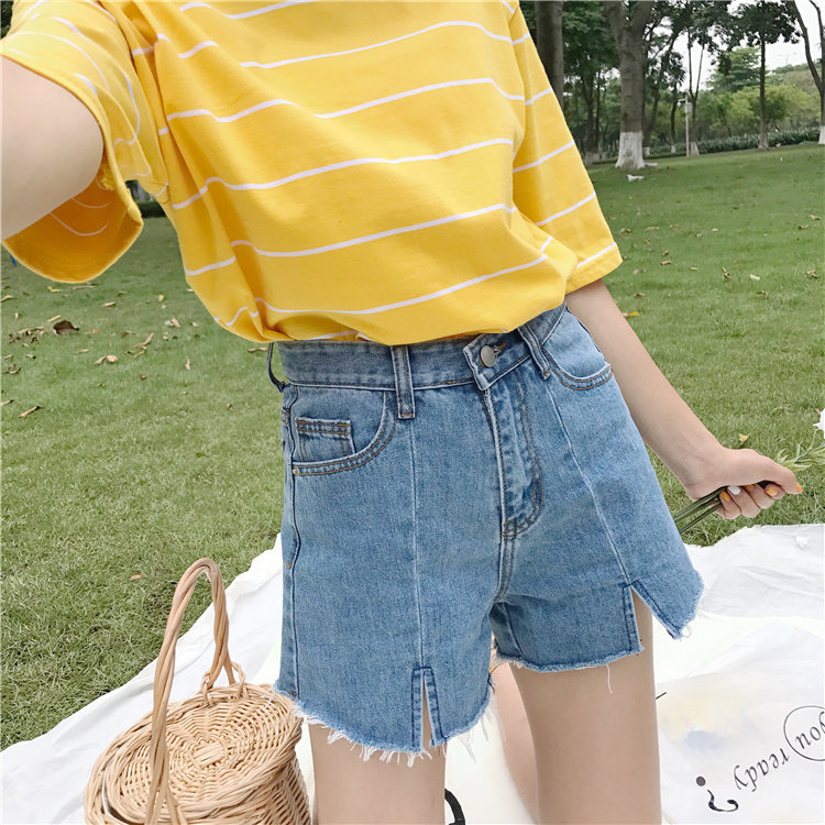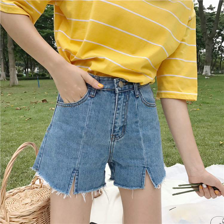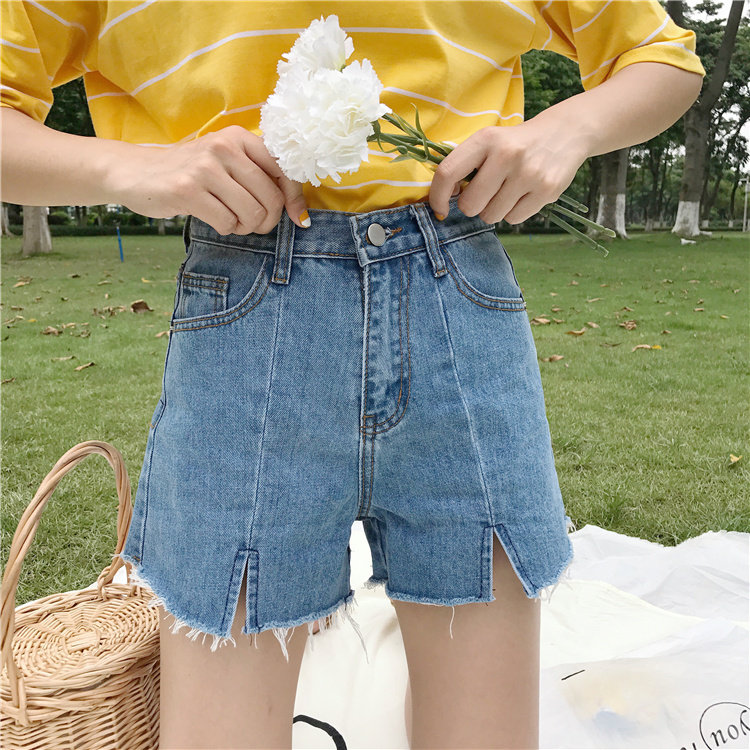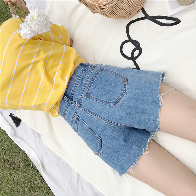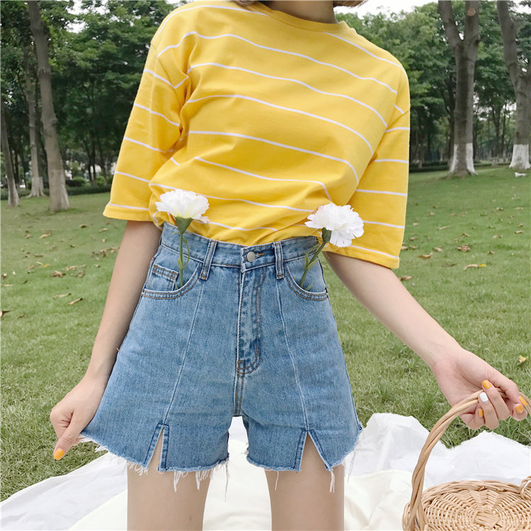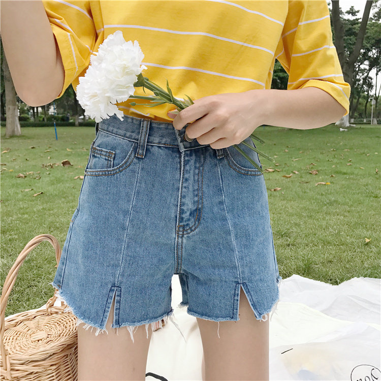Джинсы, шорты, летние штаны, высокая талия, в корейском стиле, свободный крой, А-силуэт
