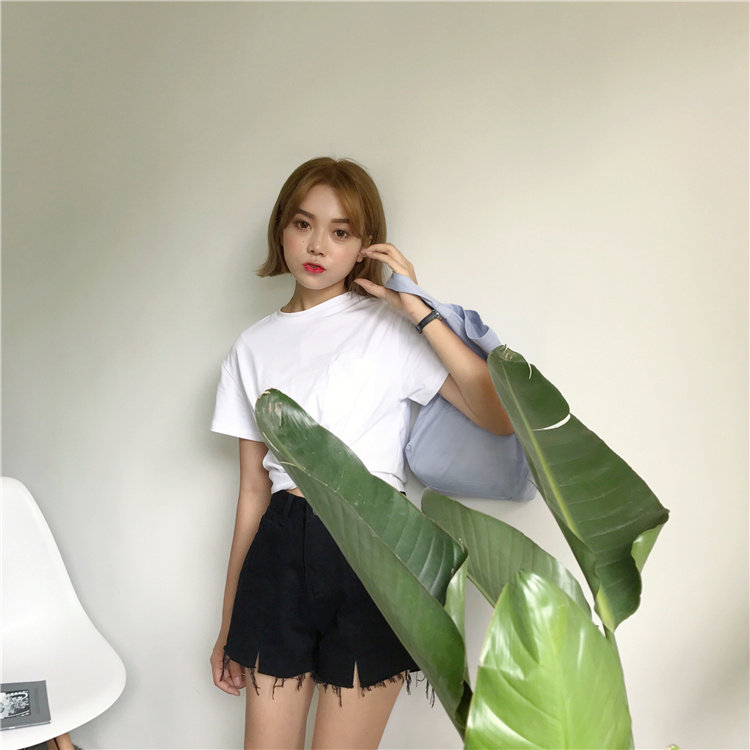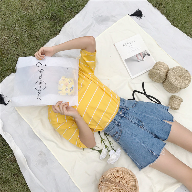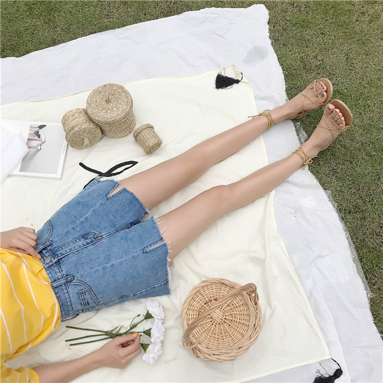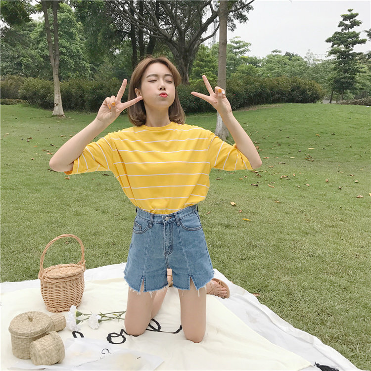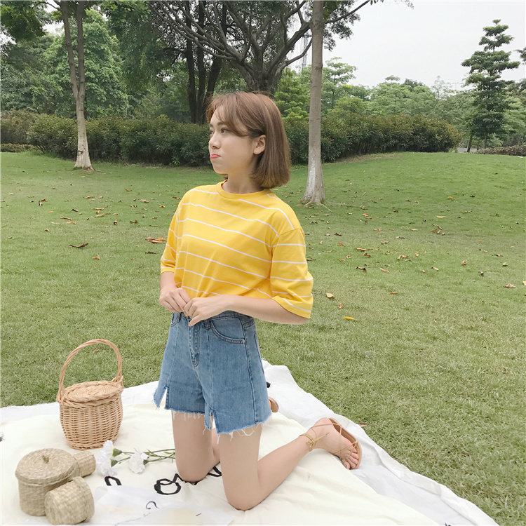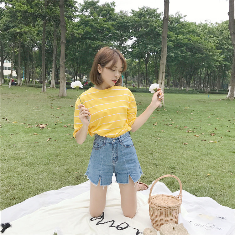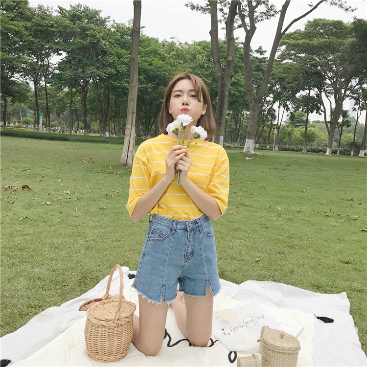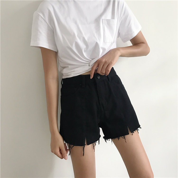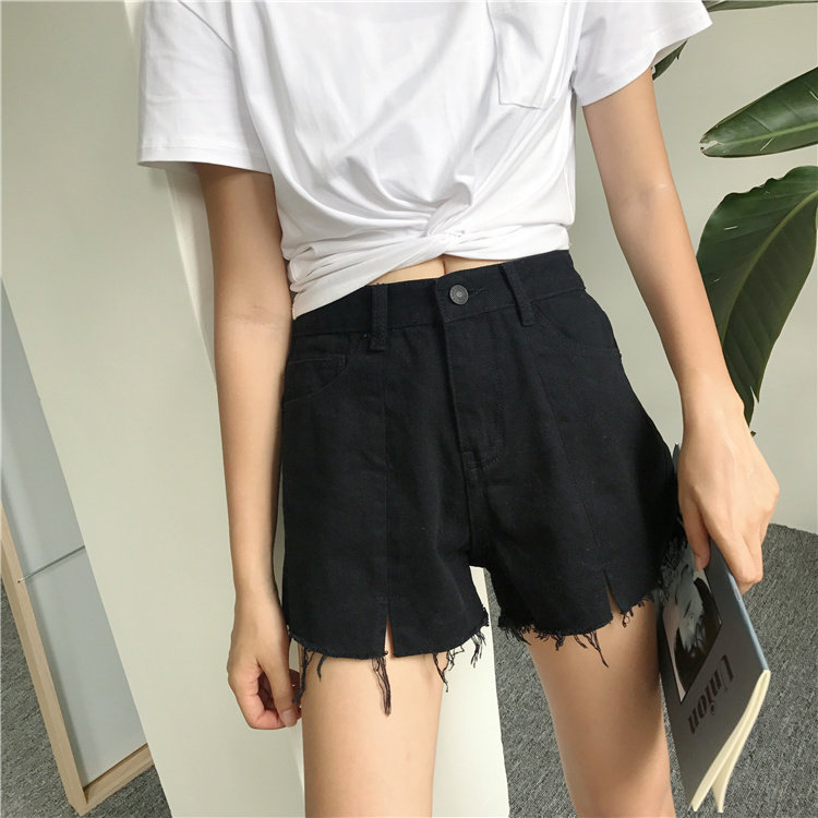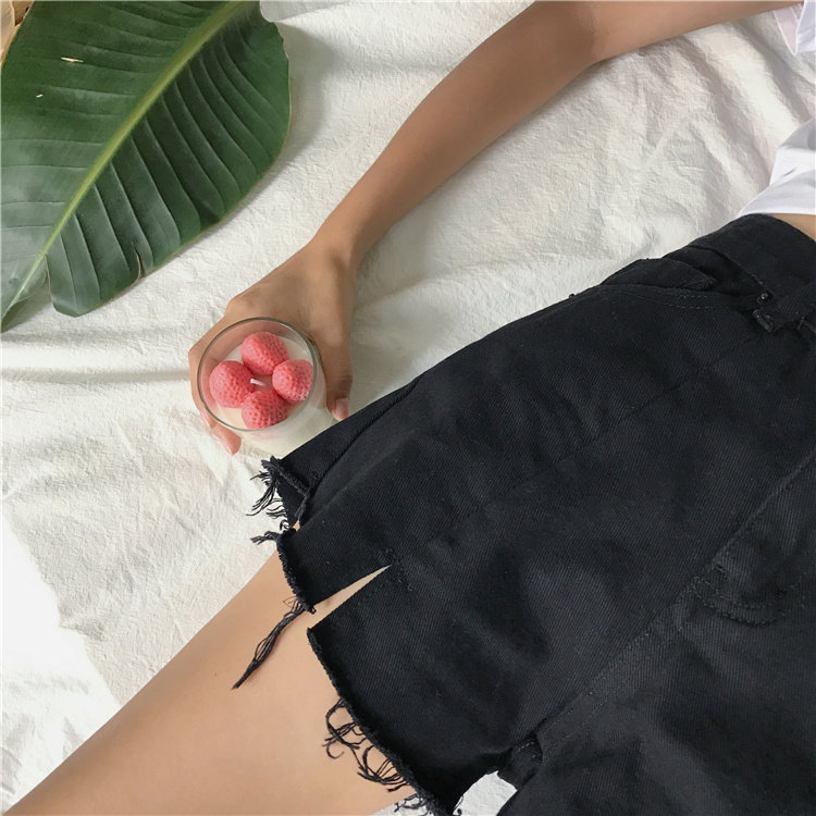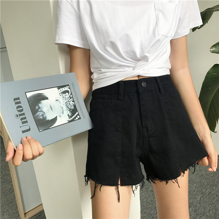Джинсы, шорты, летние штаны, высокая талия, в корейском стиле, свободный крой, А-силуэт