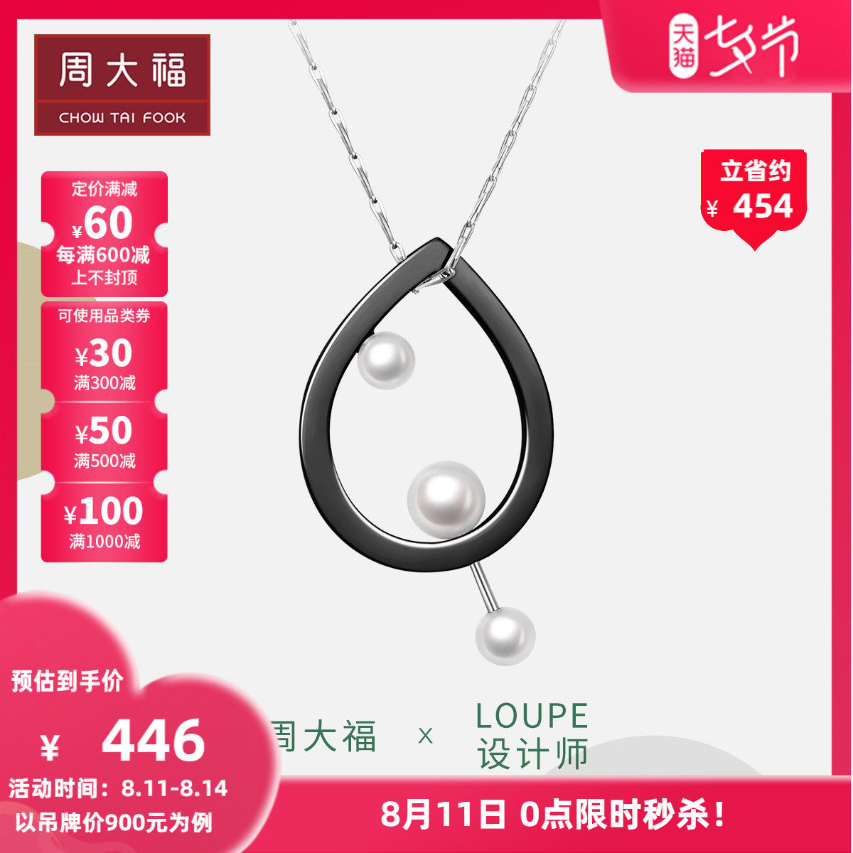 周大福 Y ERA LOUPE FOAM FOORD 925 Серебряное жемчужное ожерелье подвески AQ33252 Выбранный Спайк