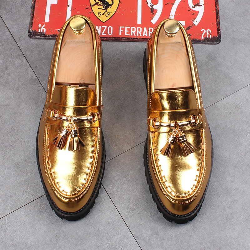 Золотой трендовый модный костюм, свадебные туфли, европейский стиль