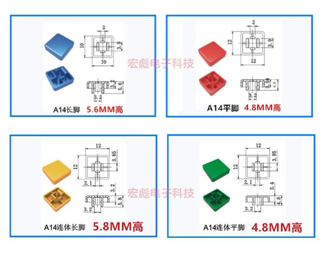 A14 Hat Touch Switch 12*12*7.3 с B3F-4055/4050 Прозрачная крышка квадратная крышка квадратной крышки