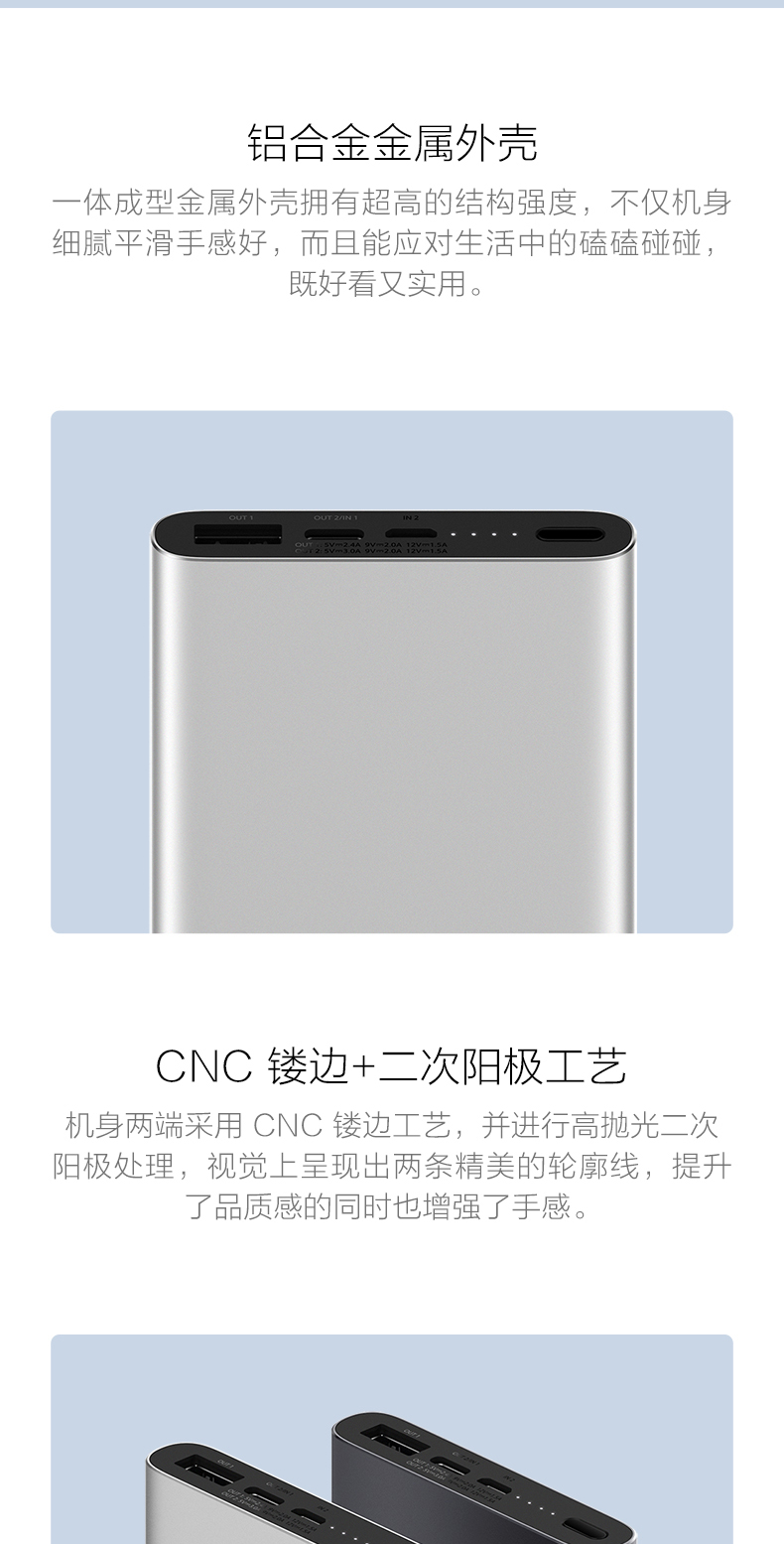 Ультратонкий маленький портативный вместительный и большой металлический блок питания