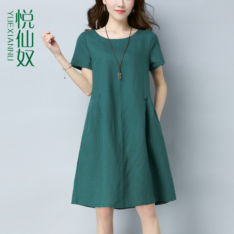 Летнее длинное платье, из хлопка и льна, средней длины, подходит для подростков