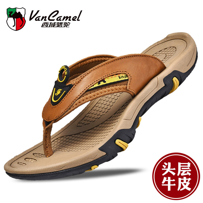 Сланцы, кожаные трендовые тапочки, спортивные босоножки для отдыха, воловья кожа, в корейском стиле, из натуральной кожи