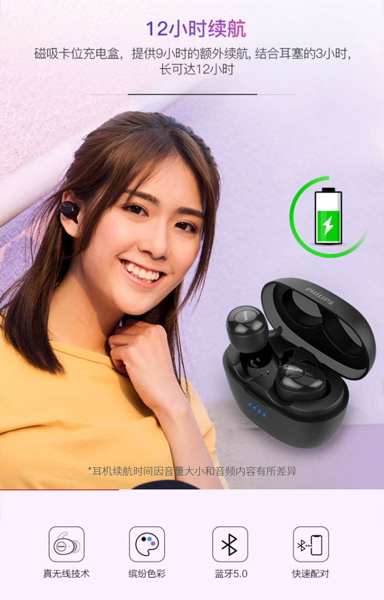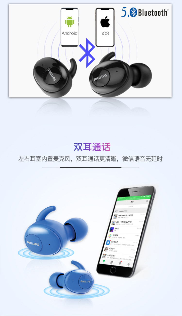 Philips/Philips SHB2505 Real Tws Беспроводная гарнитура Bluetooth с пшеницей 5.0 в уховом типе мужчины и женщины 2515
