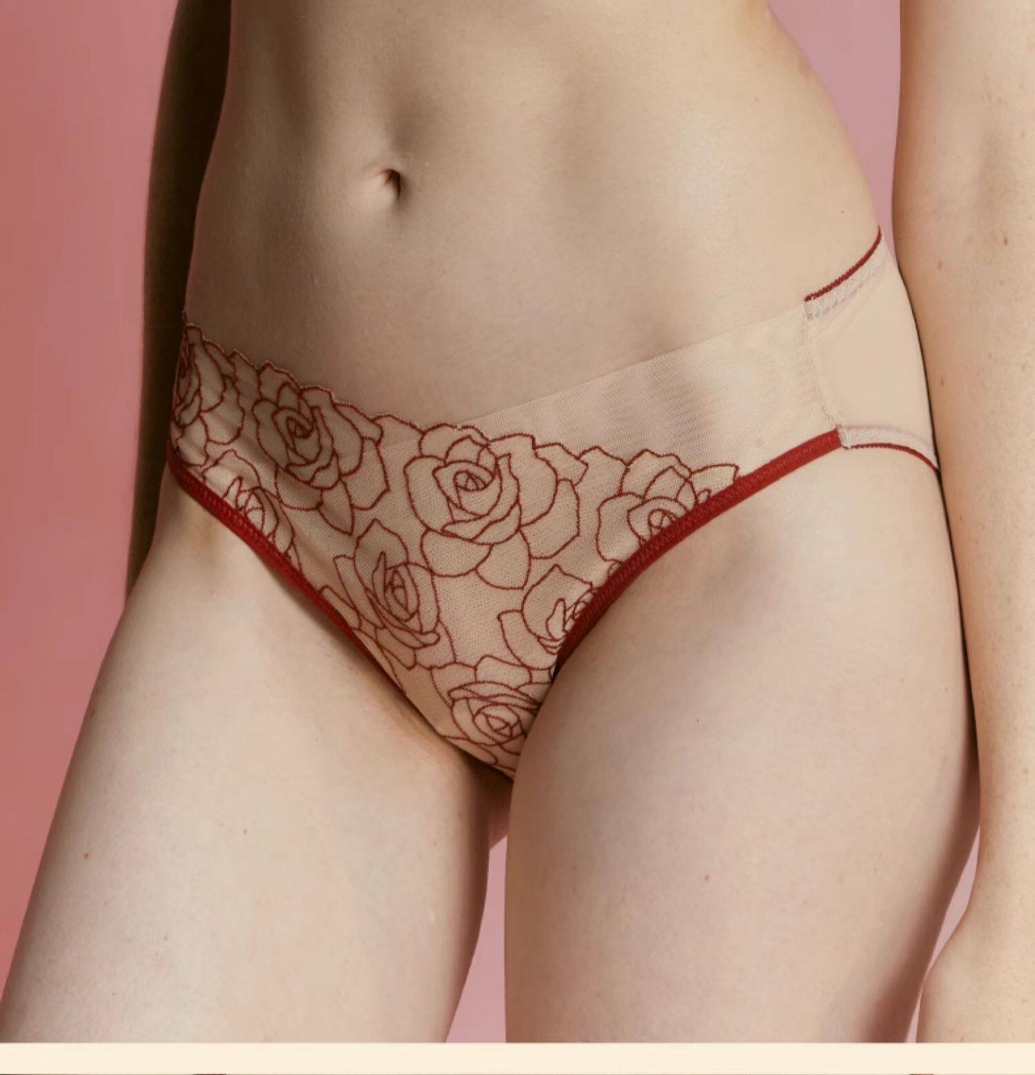 Cremesu Microcomioxing Series Французские трусики мерцающие лепестки, вышитые маленькие брюки, женские трусы с низкой талией сексуально