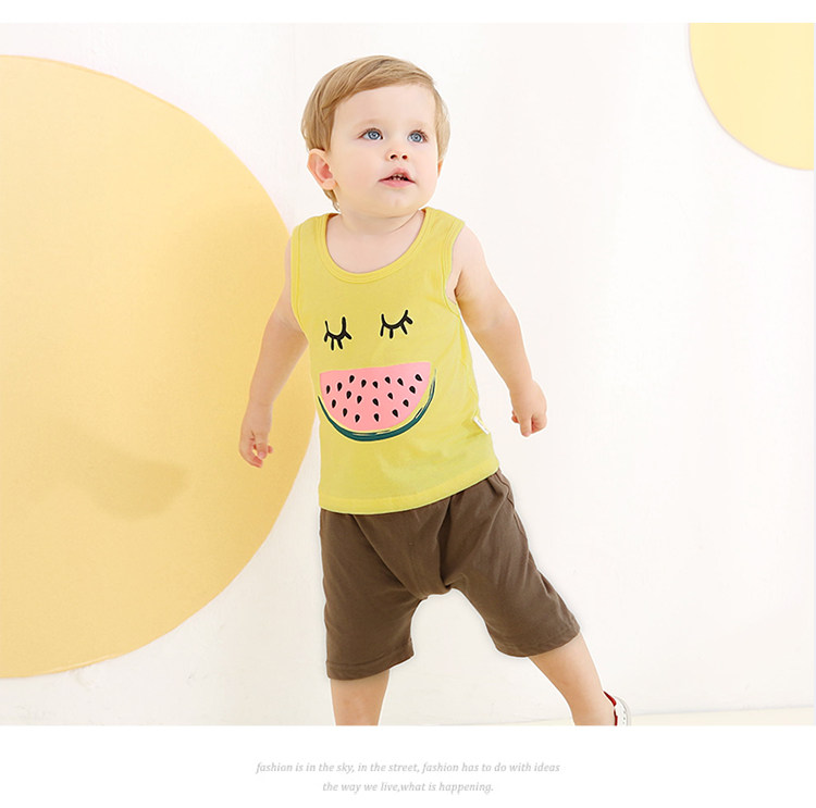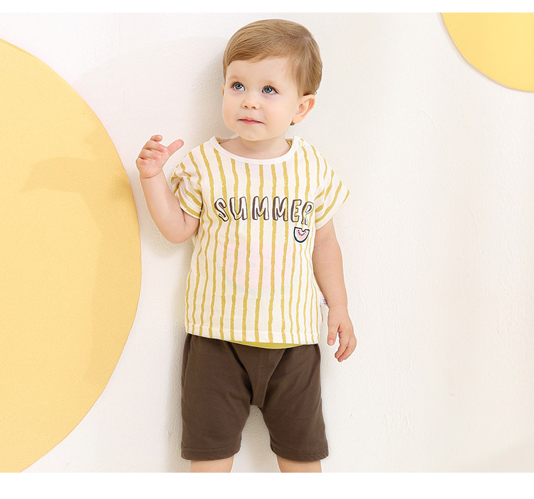 Летняя хлопковая летняя одежда, детский тонкий комплект, детские тонкие нарукавники для мальчиков, 3 предмета, короткий рукав, в западном стиле