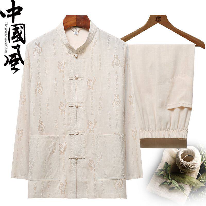 Летний лонгслив для пожилых людей, комплект, ханьфу, для среднего возраста, китайский стиль, из хлопка и льна