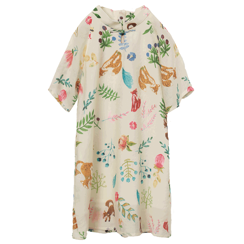 知了 Летняя одежда, хлопковое ципао, ретро платье с коротким рукавом, детская одежда, свободный крой, китайский стиль