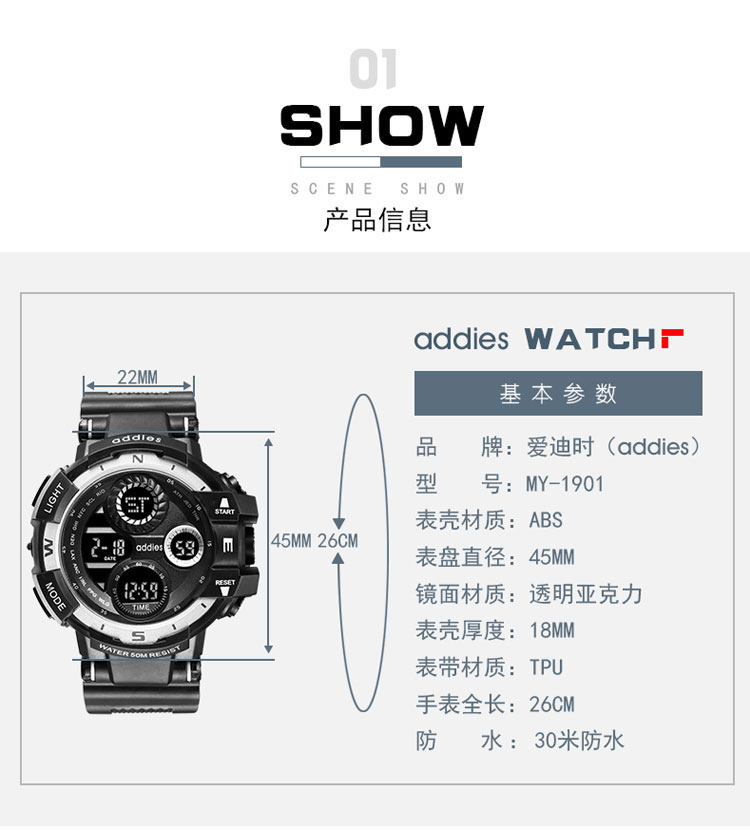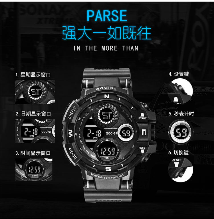 Водонепроницаемые цифровые часы, механические спортивные механические часы, швейцарские часы, в корейском стиле, подходит для подростков, для средней школы