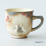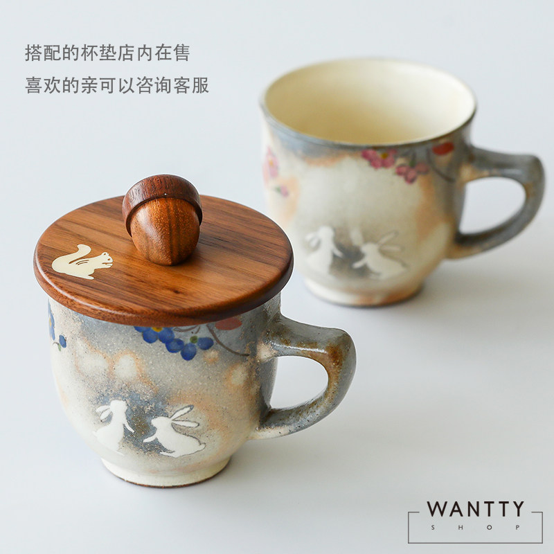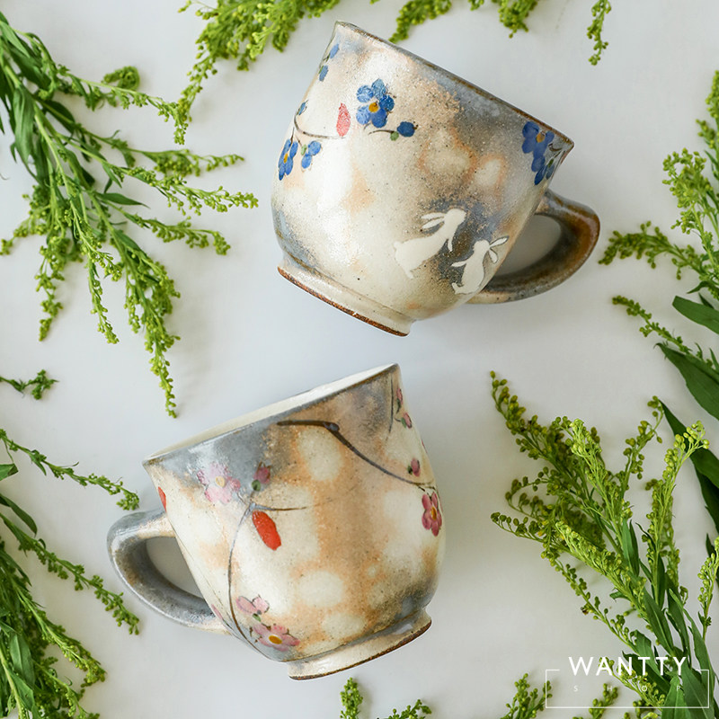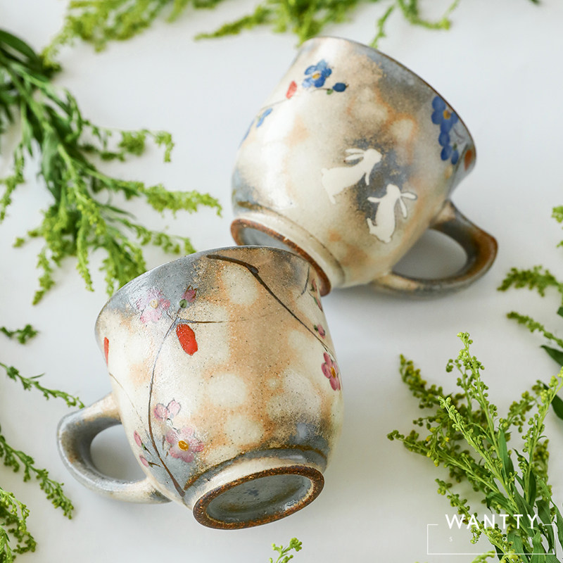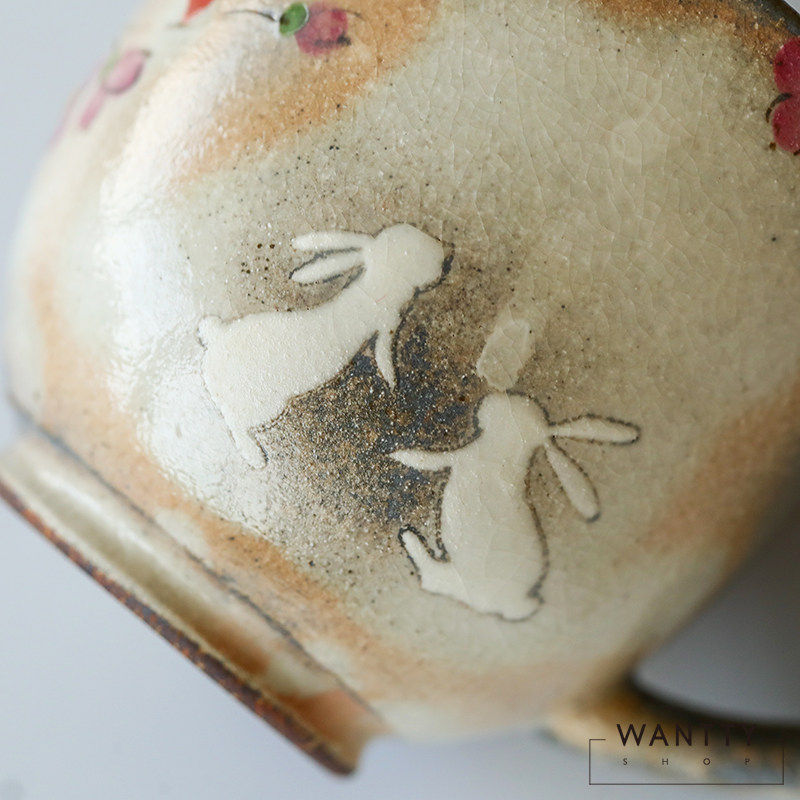 Япония -приготовление вишневого цвета кролик ретро -ретро грубая гончарная чашка пара пара вода чашка чай чашка кофейня
