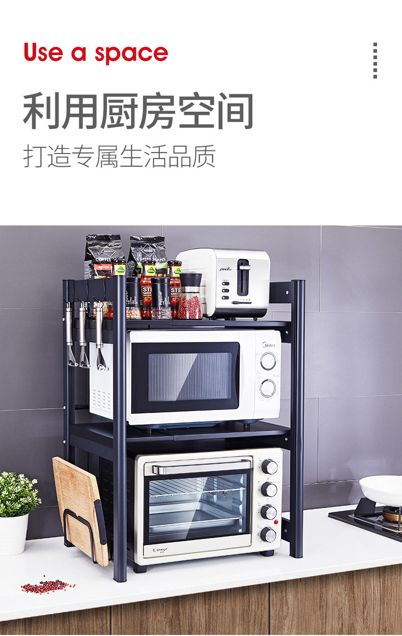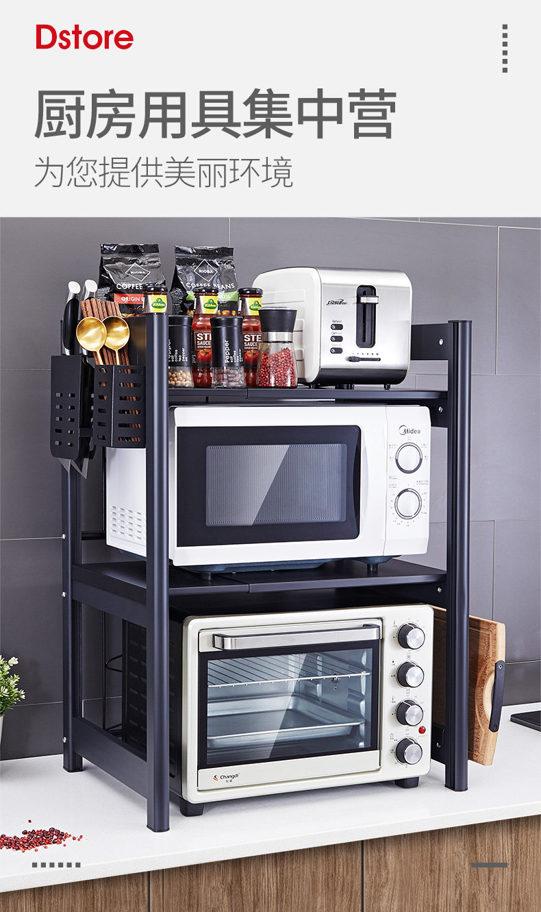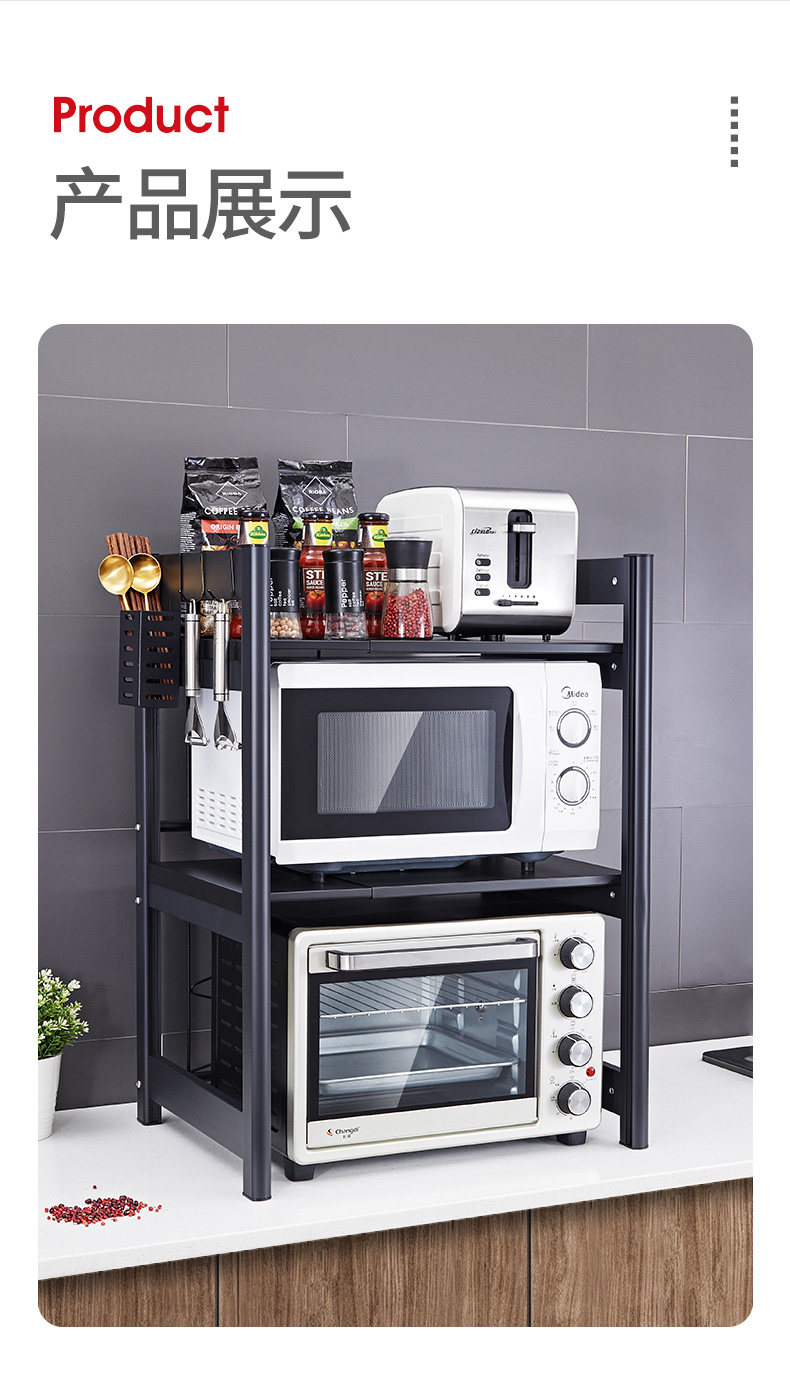 Три -слоя хранения телескопической кухни на полке, размещая стойку для микроволновой печи, столик настольного стола Электрическая печь Электрическая техника
