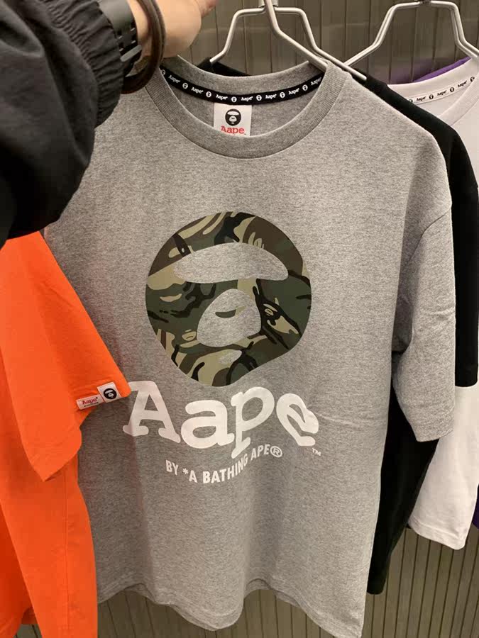 KKSH AAPE 19 весенняя мужская классическая камуфляжная футболка с короткими рукавами и буквами обезьяны 2120 *
