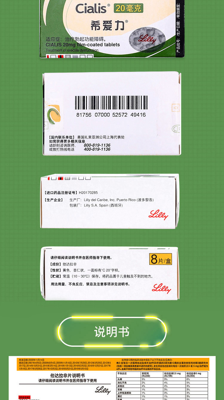 希爱力 Его Dala Non -Film 20 мг*8 таблетки его нереальная флагманская флагманская Скорость мужского пола.