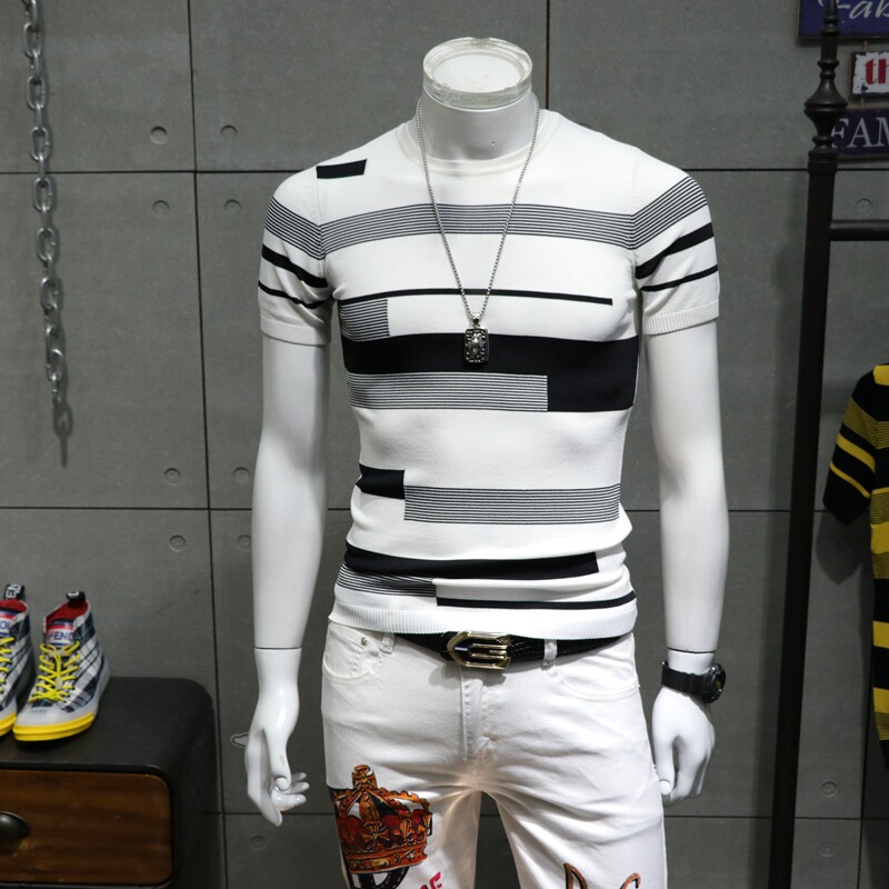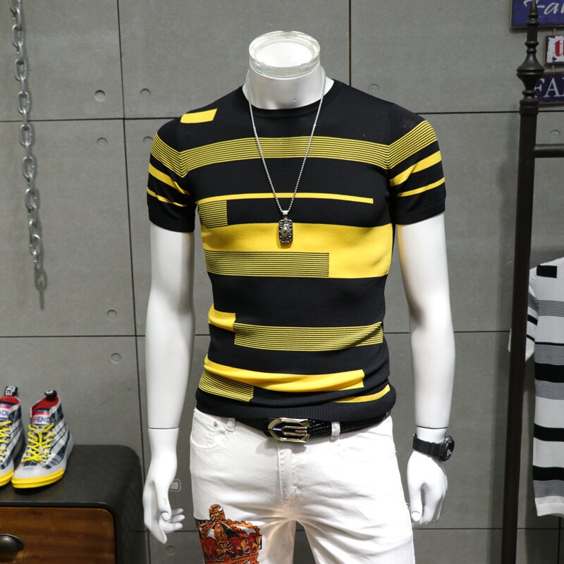 Летняя эластичная трендовая модная тонкая футболка с коротким рукавом с круглым воротником, в корейском стиле