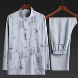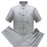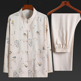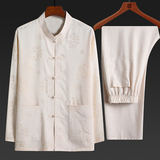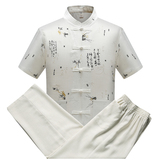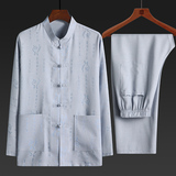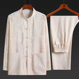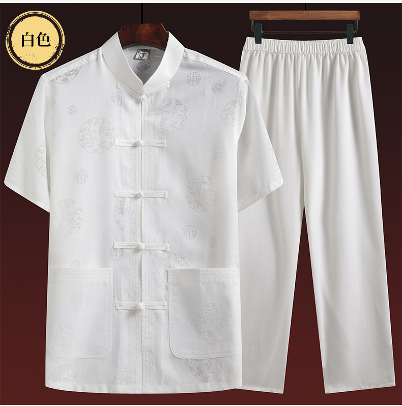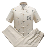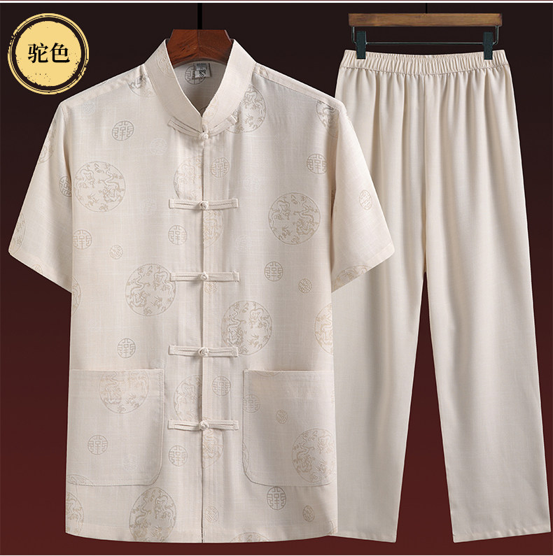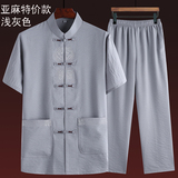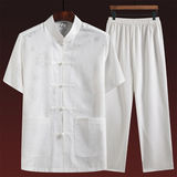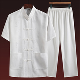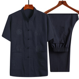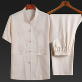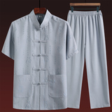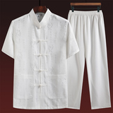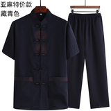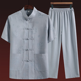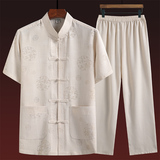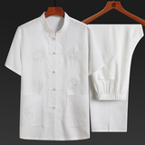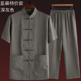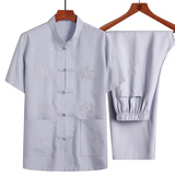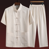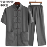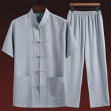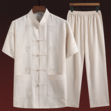 Летний комплект для пожилых людей, летняя одежда, рубашка, для среднего возраста, короткий рукав, китайский стиль, из хлопка и льна