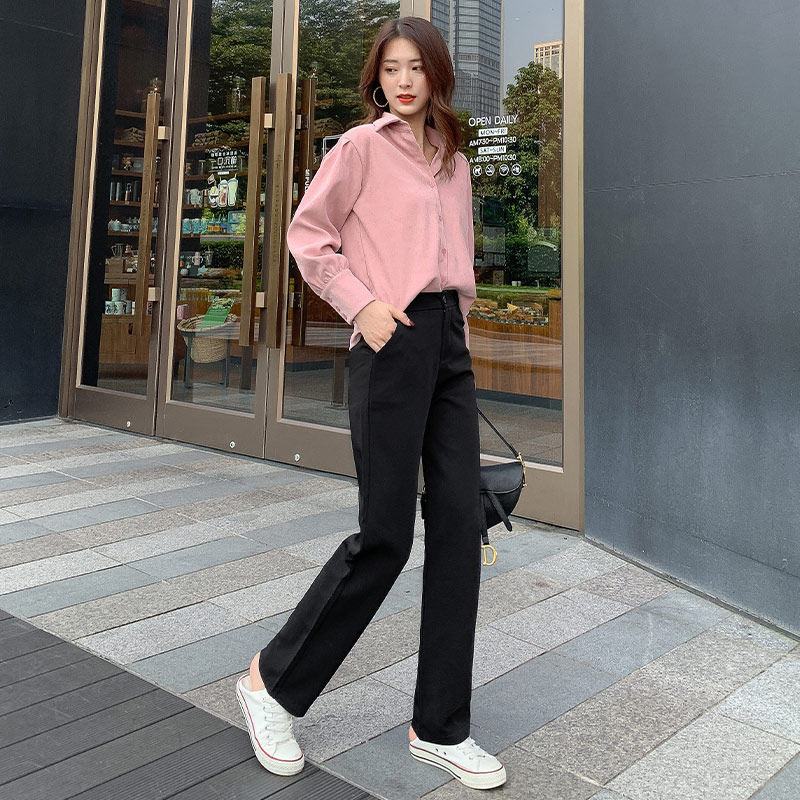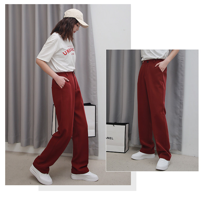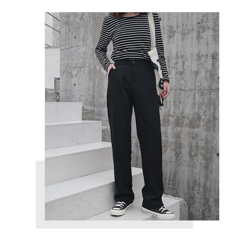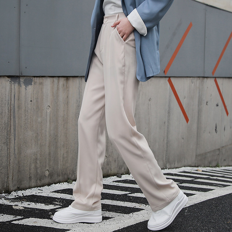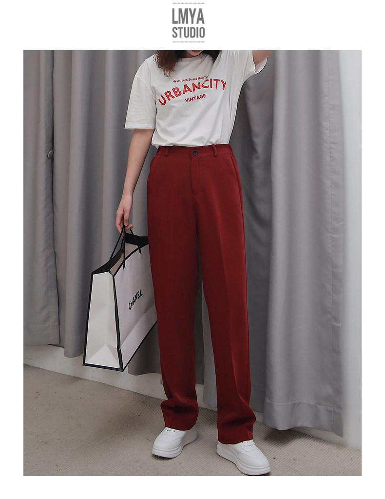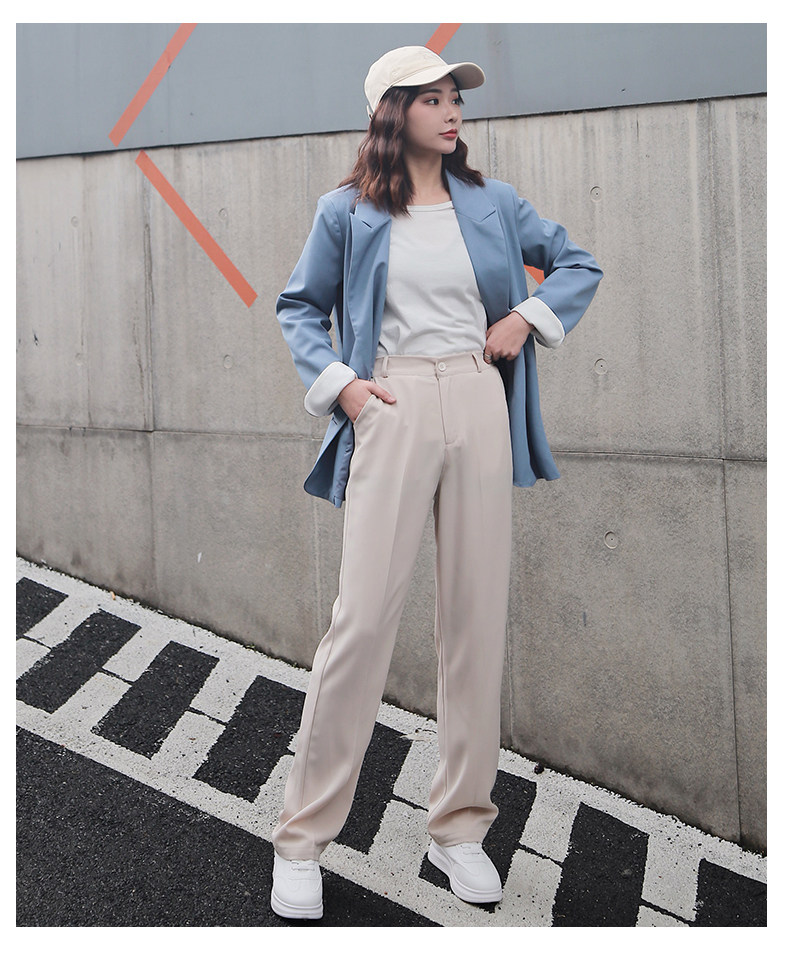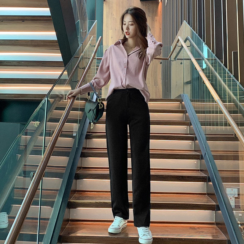 Осенние штаны, костюм, свободный прямой крой, высокая талия