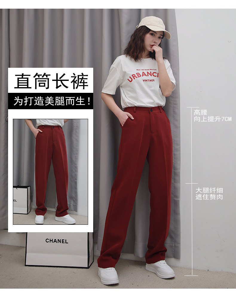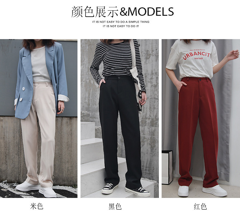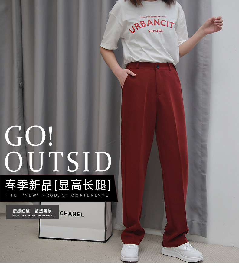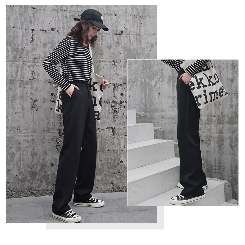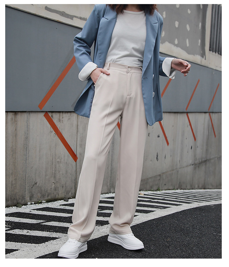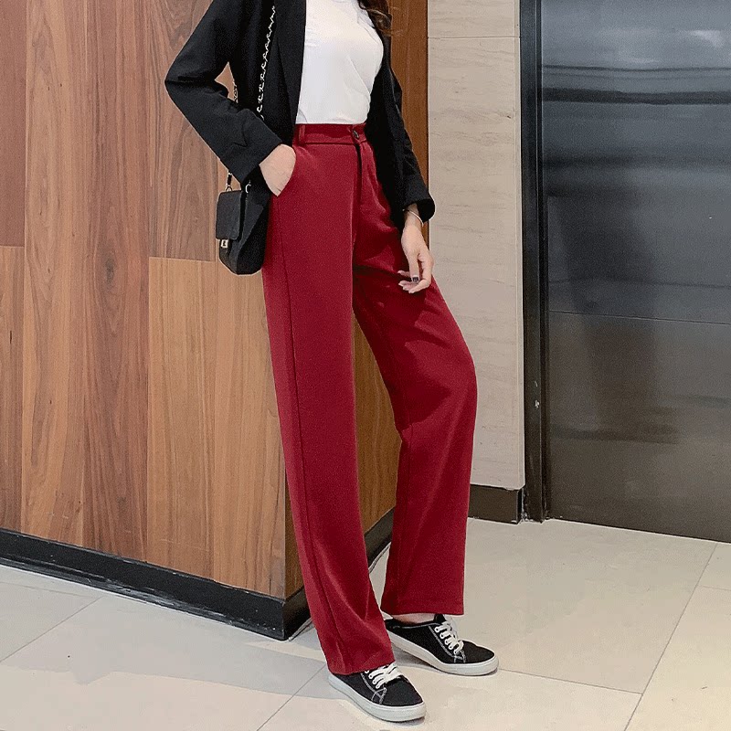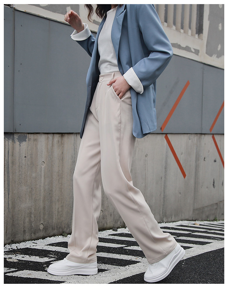 Осенние штаны, костюм, свободный прямой крой, высокая талия