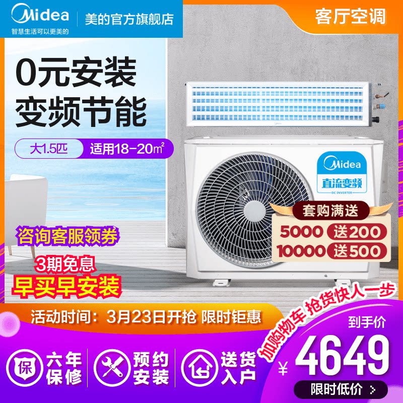 Midea/美的 Кондиционер в гостиной Интеллектуальной частотный преобразователь Электрический энергосберегающий домохозяйство центральный кондиционер большой 1,5-лошадь воздухопроводной машины