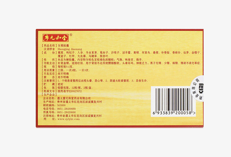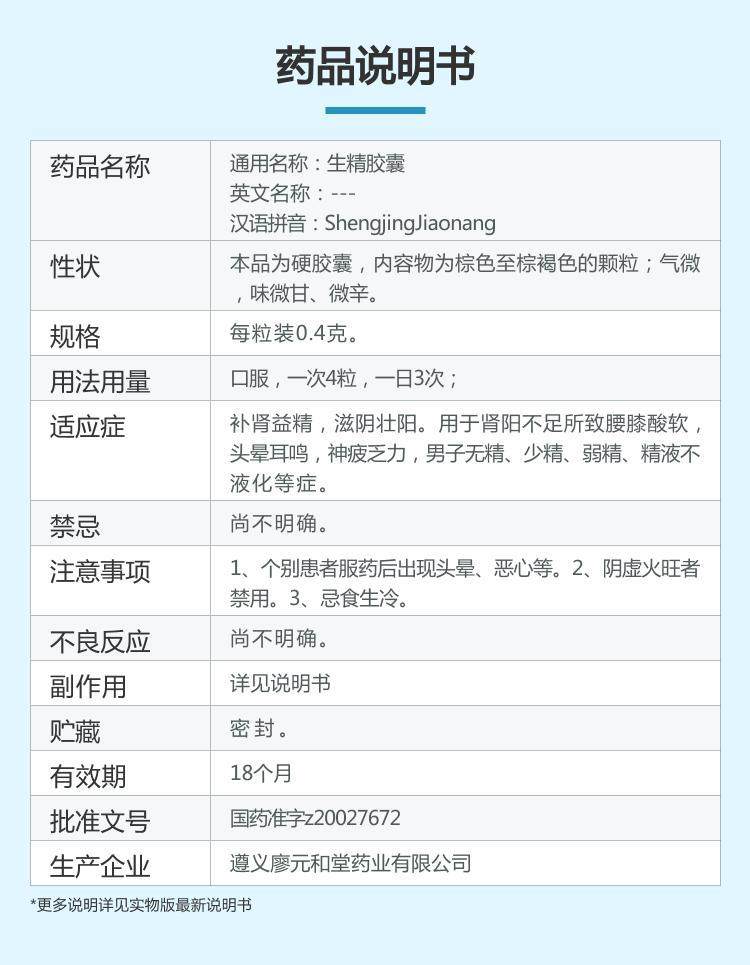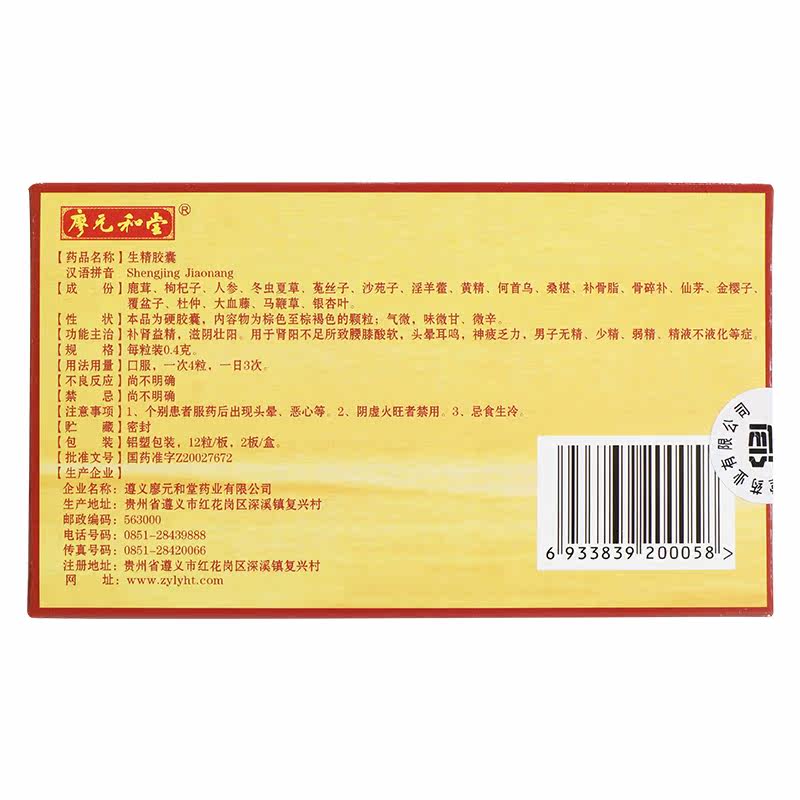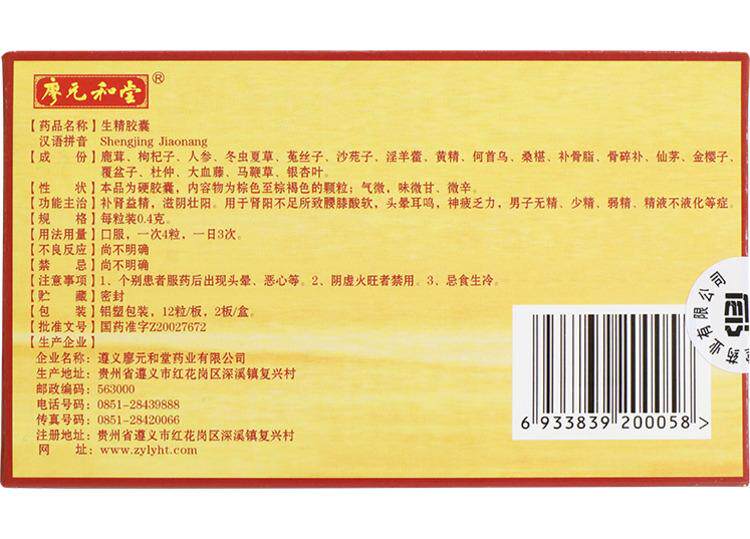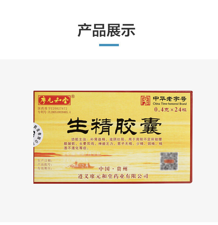 廖元和堂 Сырая капсула эссенции 0,4 г*24 капсулы/коробка слабая сперма сперматозоидов беременность без сжиженной питательной почек, головокружение, ушах, сперма, благородный афродизиак, усталость, усталость