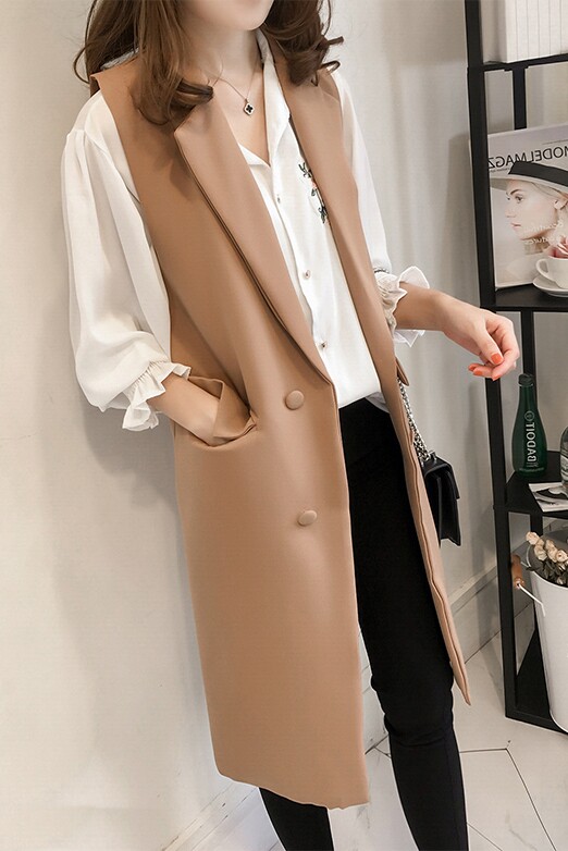Осенний длинный жилет, костюм без рукавов, куртка, средней длины, 2019, большой размер