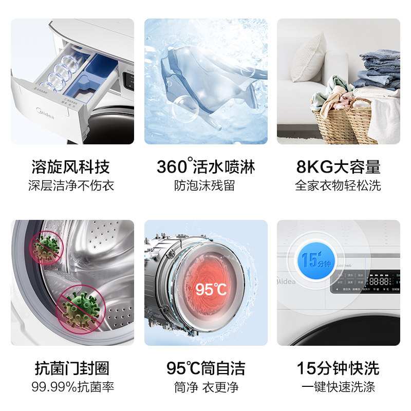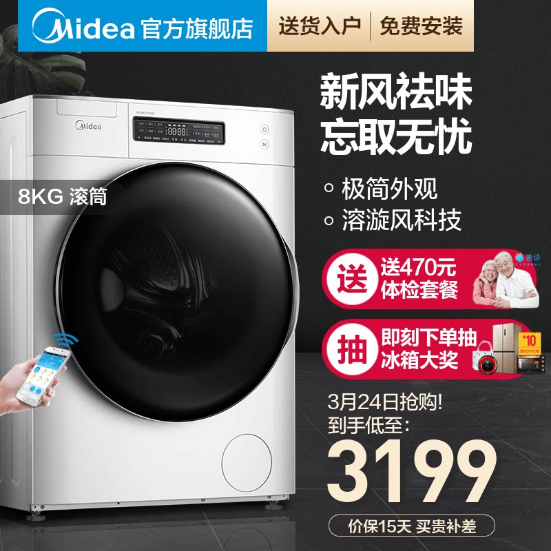 Midea/美的 8 кг кг Полностью автоматическая стиральная машина для дома умный инвертор барабан Mg80t1wd