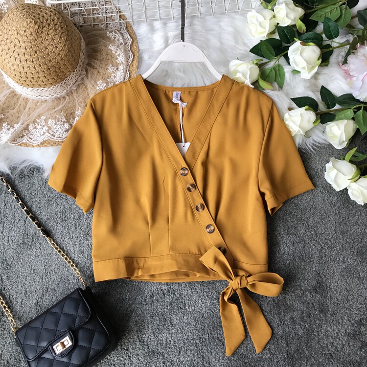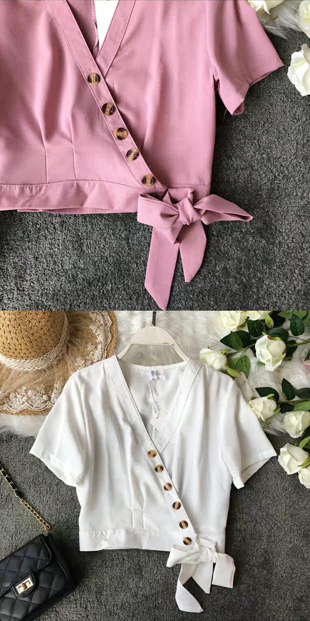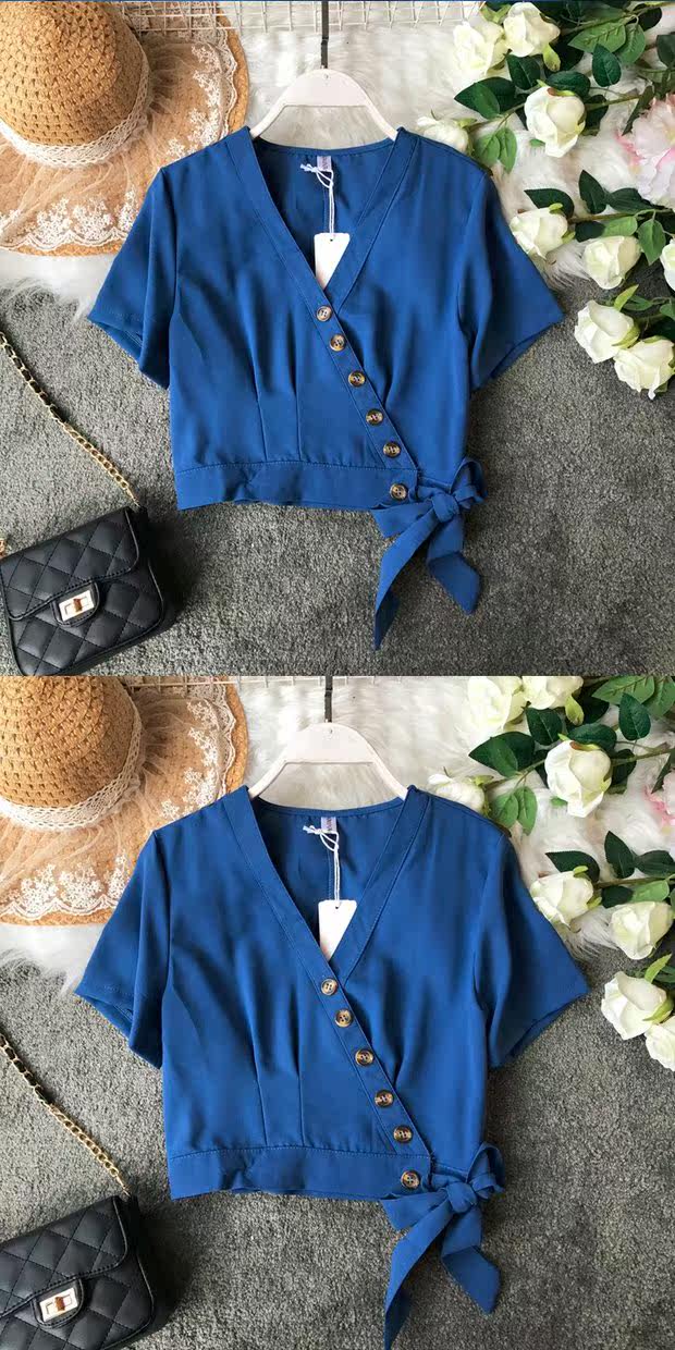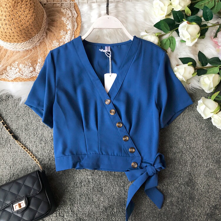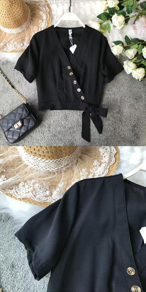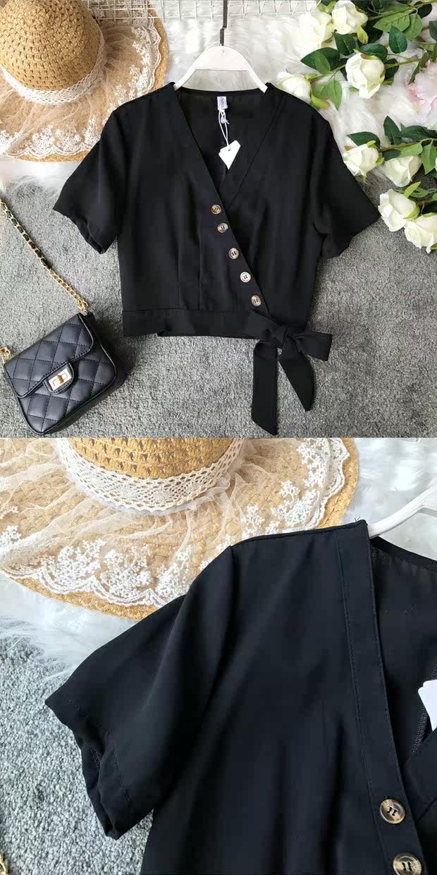 Европейский и американский стиль 2021, весна и лето, новый стиль, модный универсальный V-образный вырез, тонкий, тонкий, кружевной, на пуговицах, однотонный, короткий топ для женщин