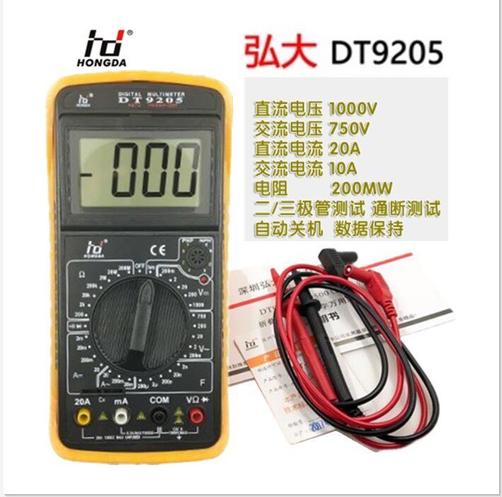 Оригинальный аутентичный Shenzhen Hongda DT9205 цифровой мультиметровый DT-9205 цифровой мультиметр
