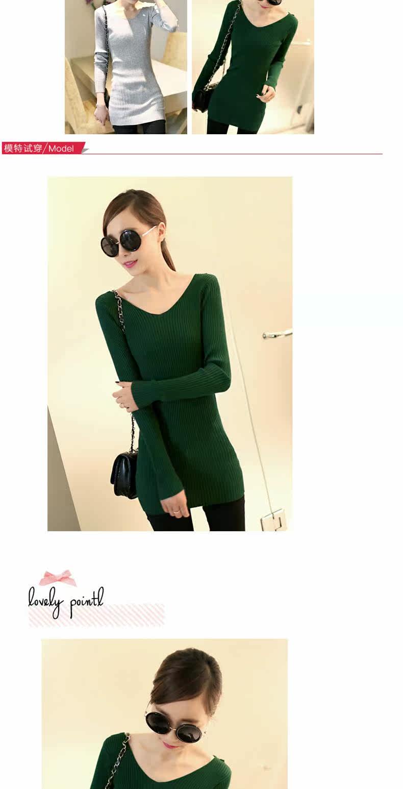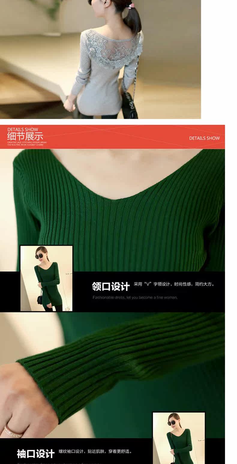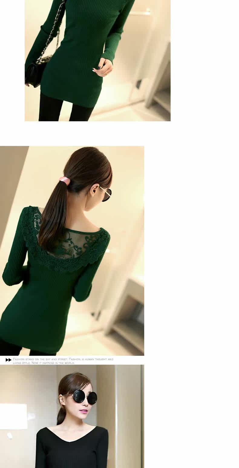 Демисезонный кружевной трикотажный базовый приятный телу цветной длинный свитер, V-образный вырез
