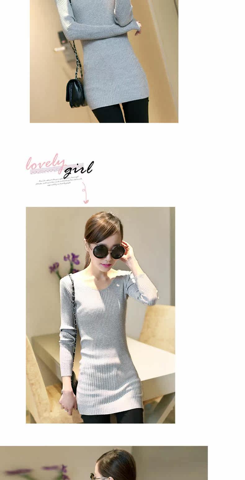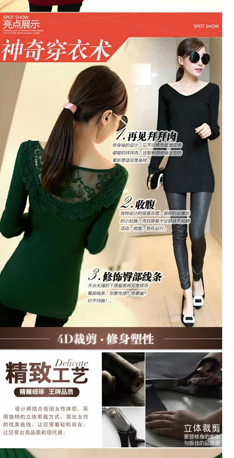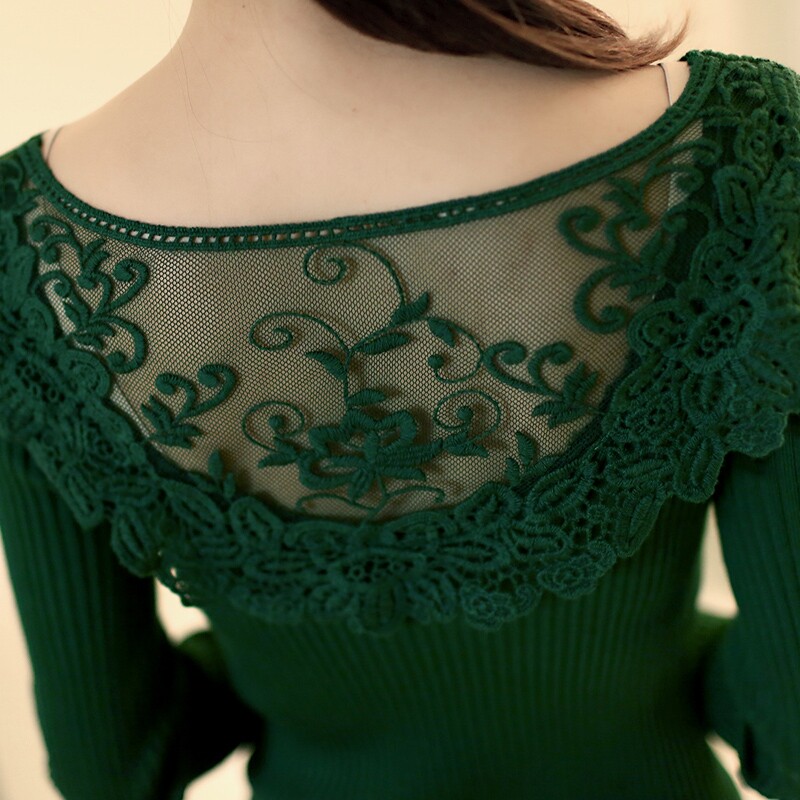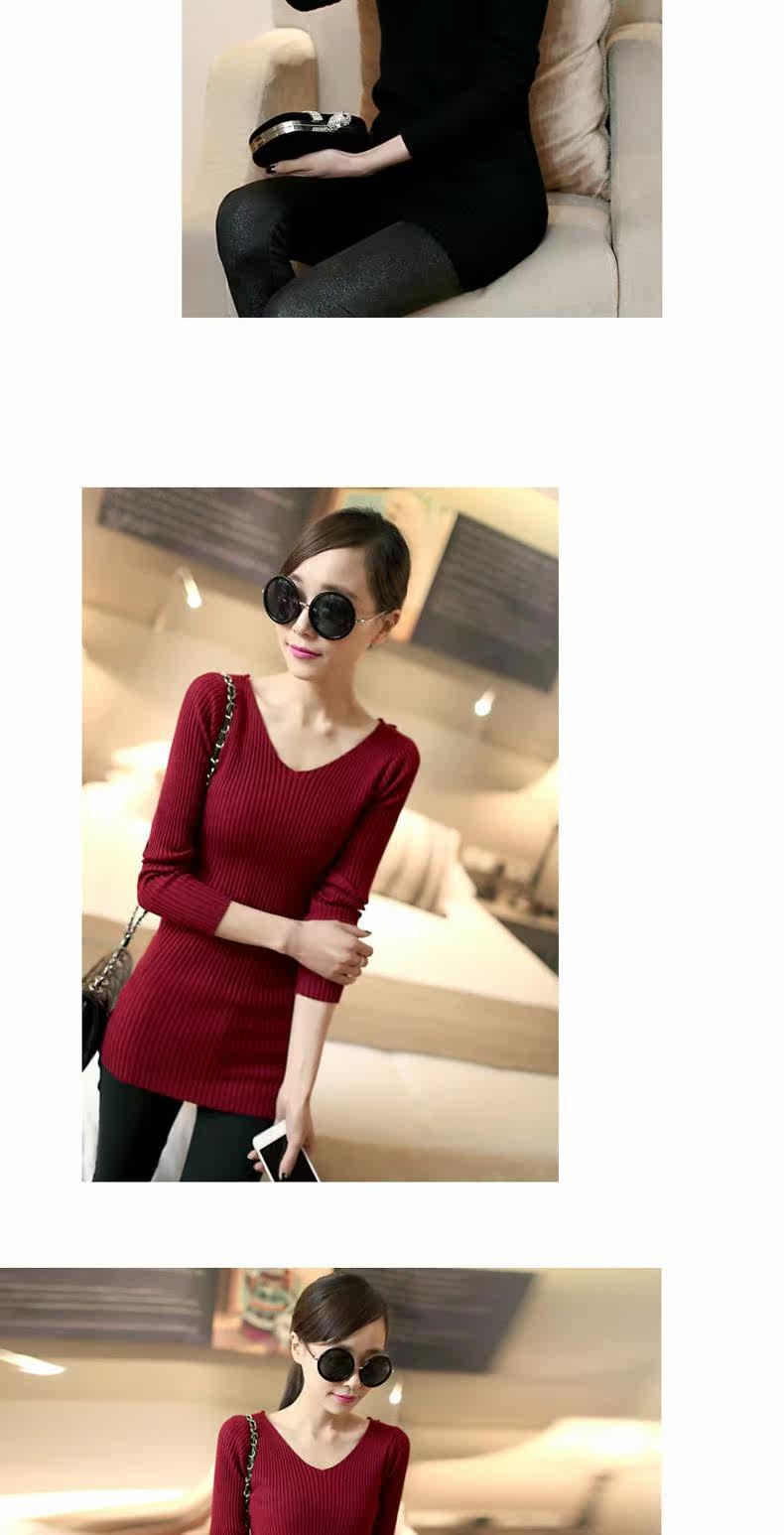Демисезонный кружевной трикотажный базовый приятный телу цветной длинный свитер, V-образный вырез