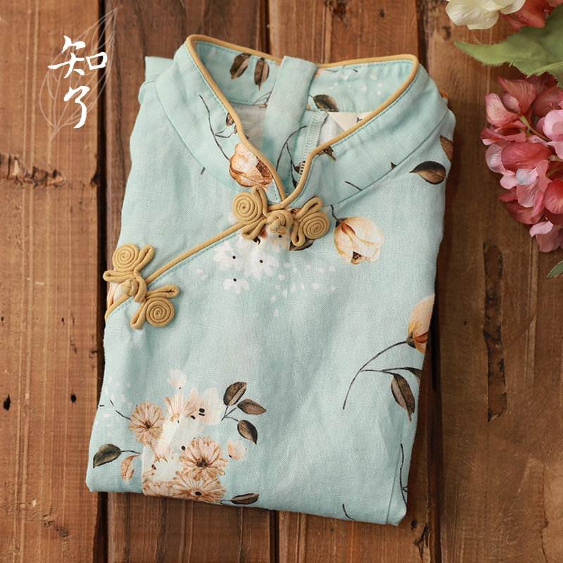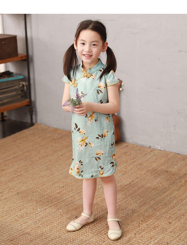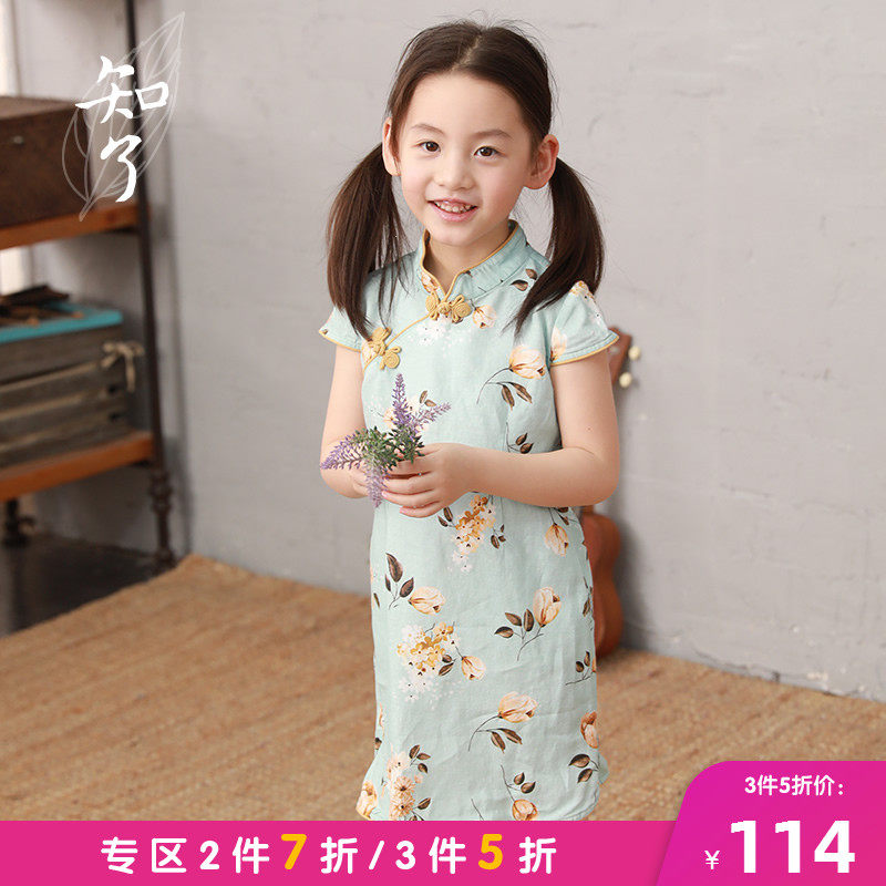 知了 Детская одежда лето новое продукт для девочки белье китайская печать Cheongsam Short -Sleeded Dress K4919