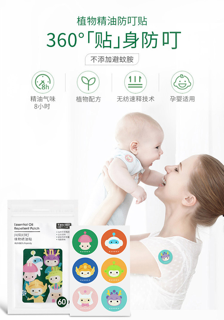 润本 Средство от комаров, жидкость от комаров, детское масло, детская наклейка, для беременных женщин и детей