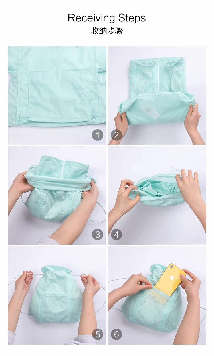 ![]() | ДизайнДизайн кармана кармана на спине, вы можете хранить свою одежду в небольшом рюкзаке для легкого переноса. |
