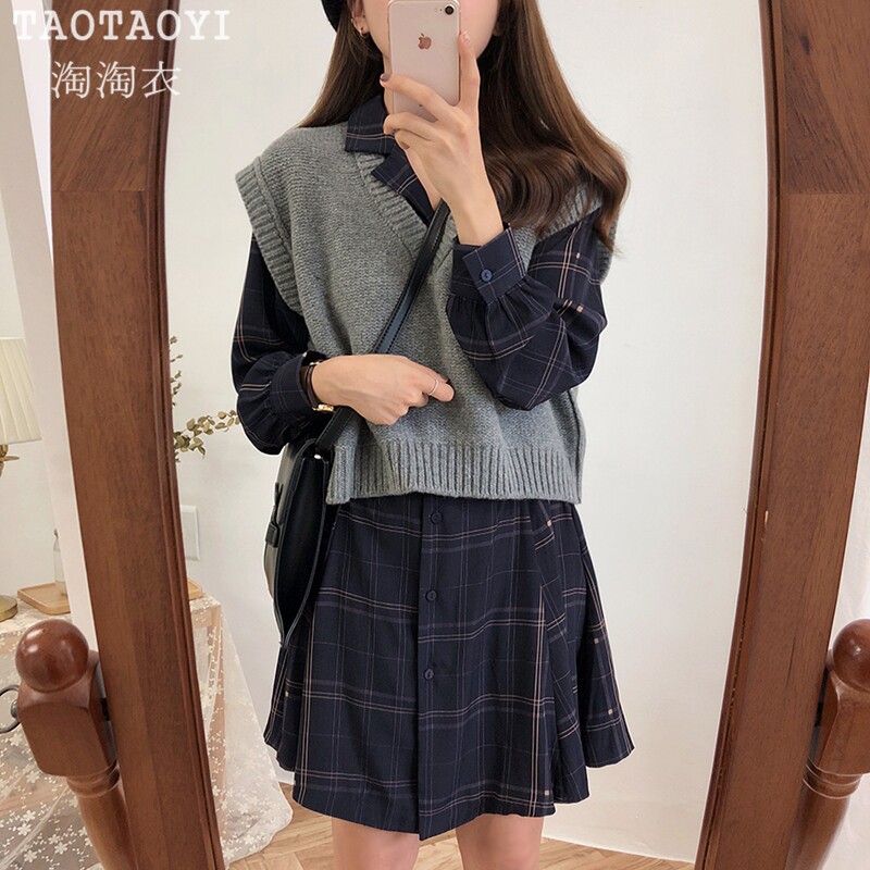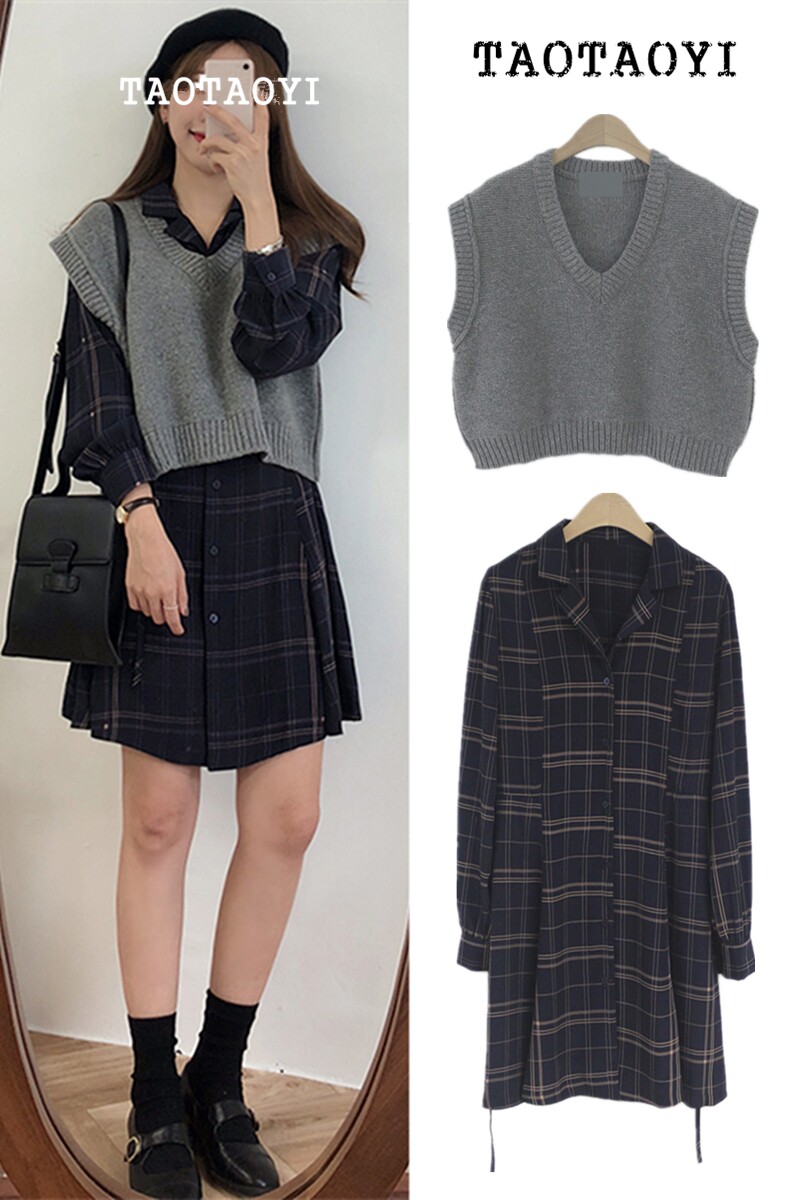 Корсет, рубашка, платье, трикотажный свитер, жилет, комплект, в корейском стиле