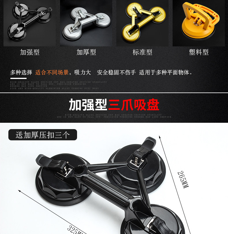 Стеклянная чашка всасывания сильное всасывающее устройство Одиночное и двойное тройка плитка плитки с толщиной плитки и инструменты обработки алюминиевого сплава