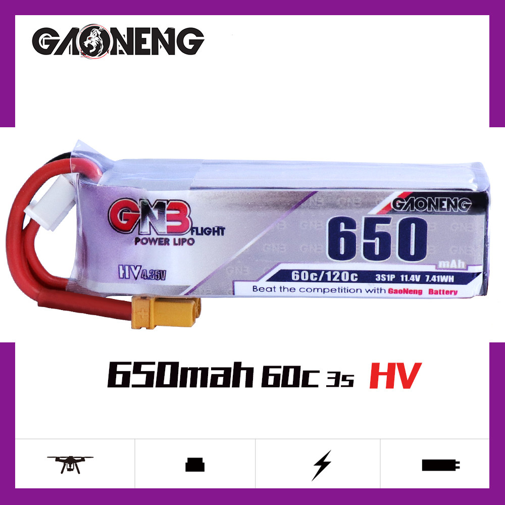 Высокоэнергетический GNB 650MAH 3S 11,4 В 60C HV Высокое напряжение Небольшое четырех осевое модельное питание литиеевая батарея лития лития