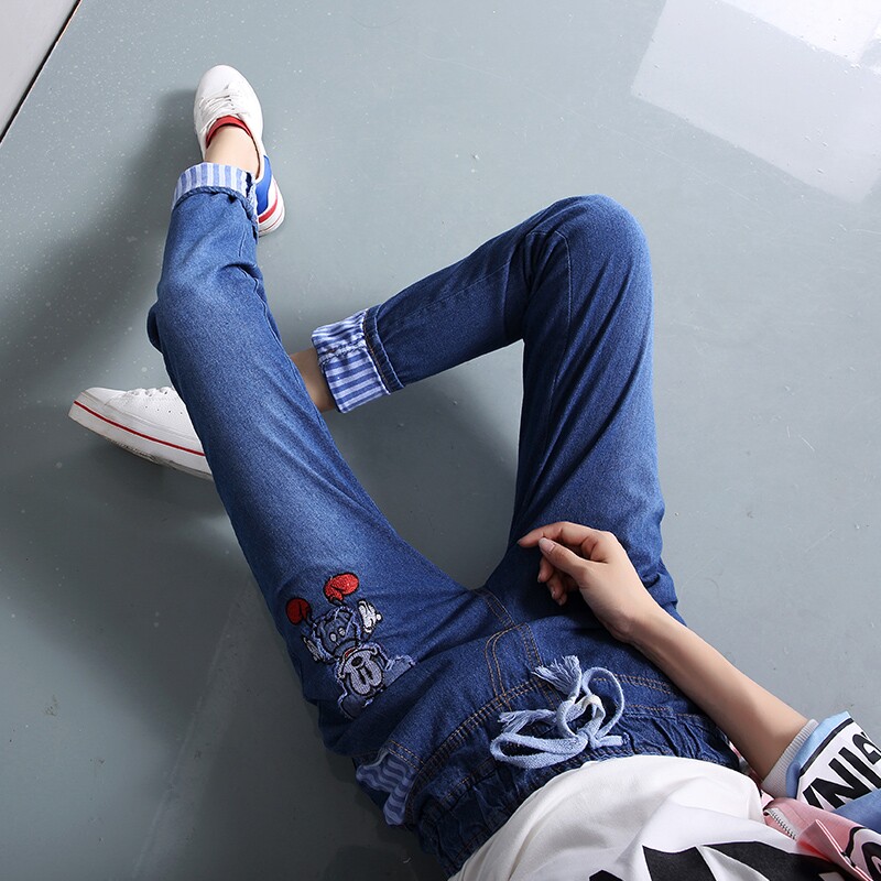 Осенние джинсы, флисовые повседневные брюки для школьников и студентов для отдыха, подходят для подростков, эластичная талия, свободный крой, для средней школы