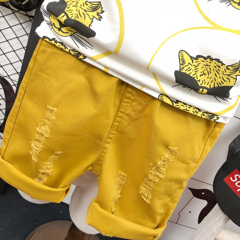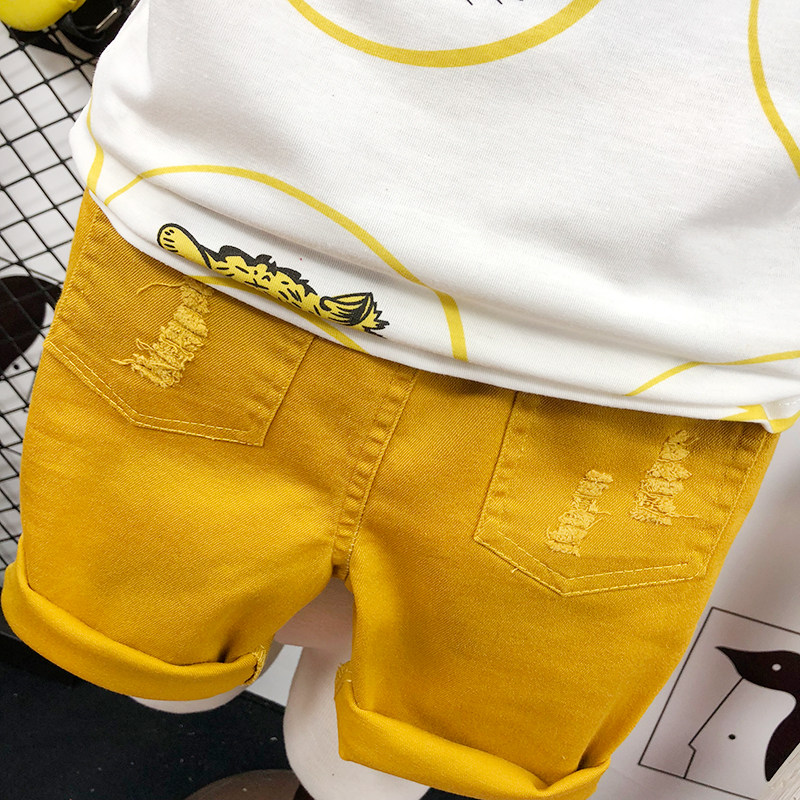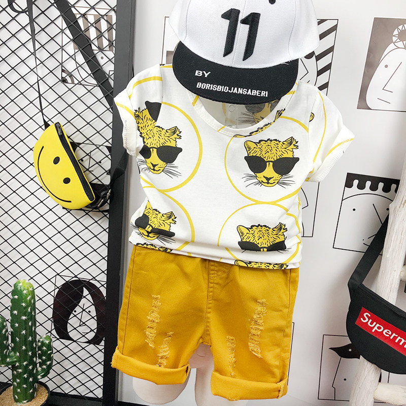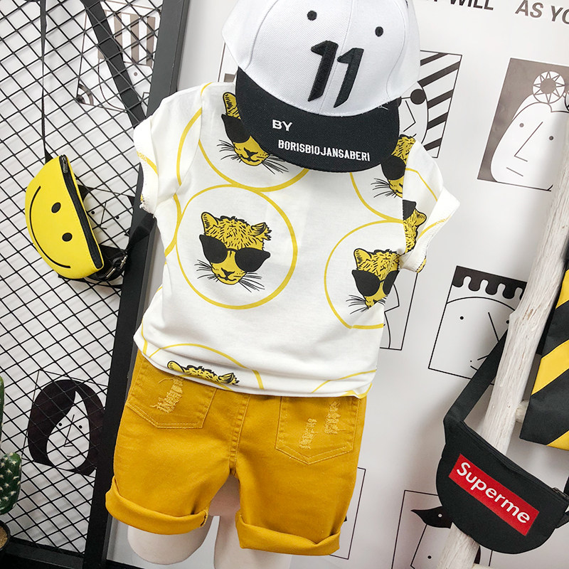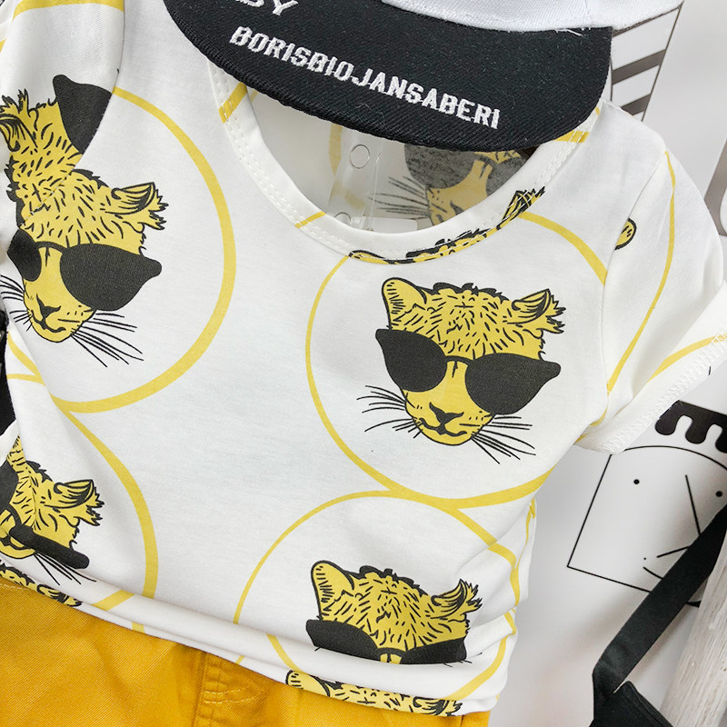 Детская летняя одежда, футболка с коротким рукавом, мультяшный хлопковый детский комплект с круглым воротником