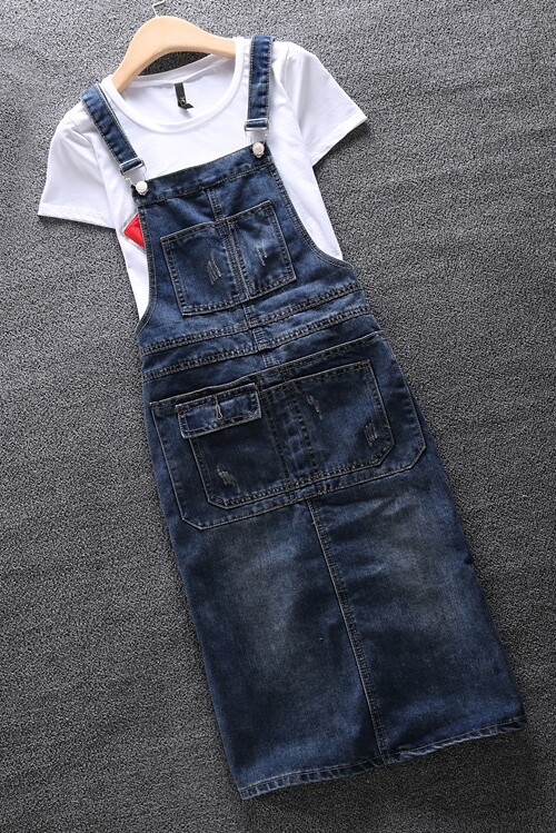 Джинсовый сарафан, юбка для школьников и студентов, длинное приталенное платье-комбинация, большой размер, в корейском стиле, средней длины