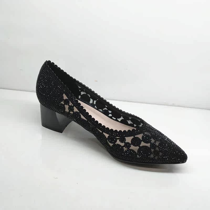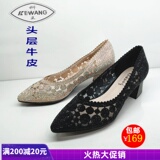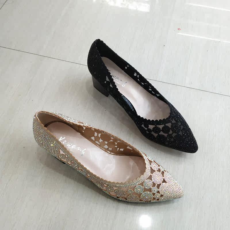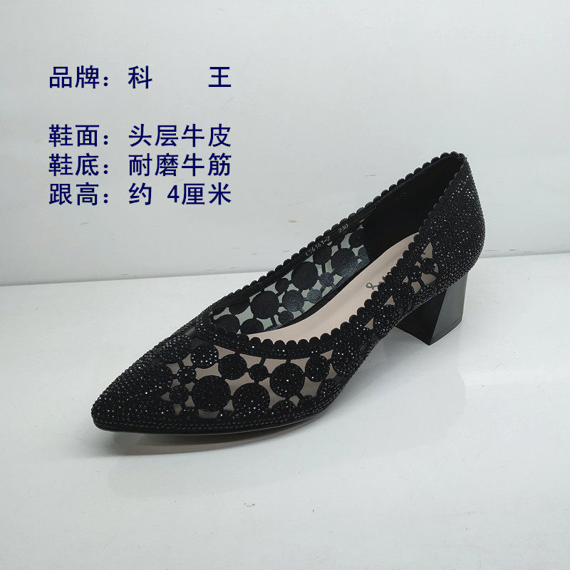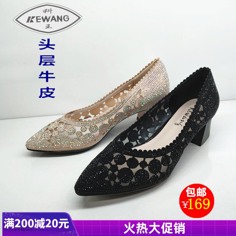 2020 Кеванг Кинг Женская обувь весной и летними женскими одиночными туфлями на густых каблуках и кожаной яркой буровой пустой моде 6161