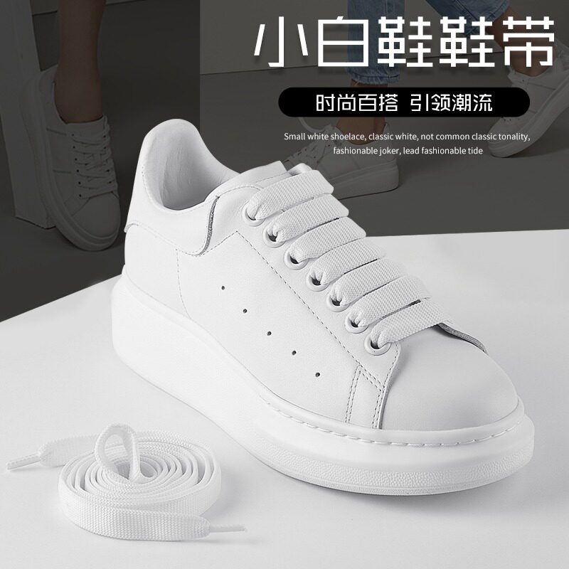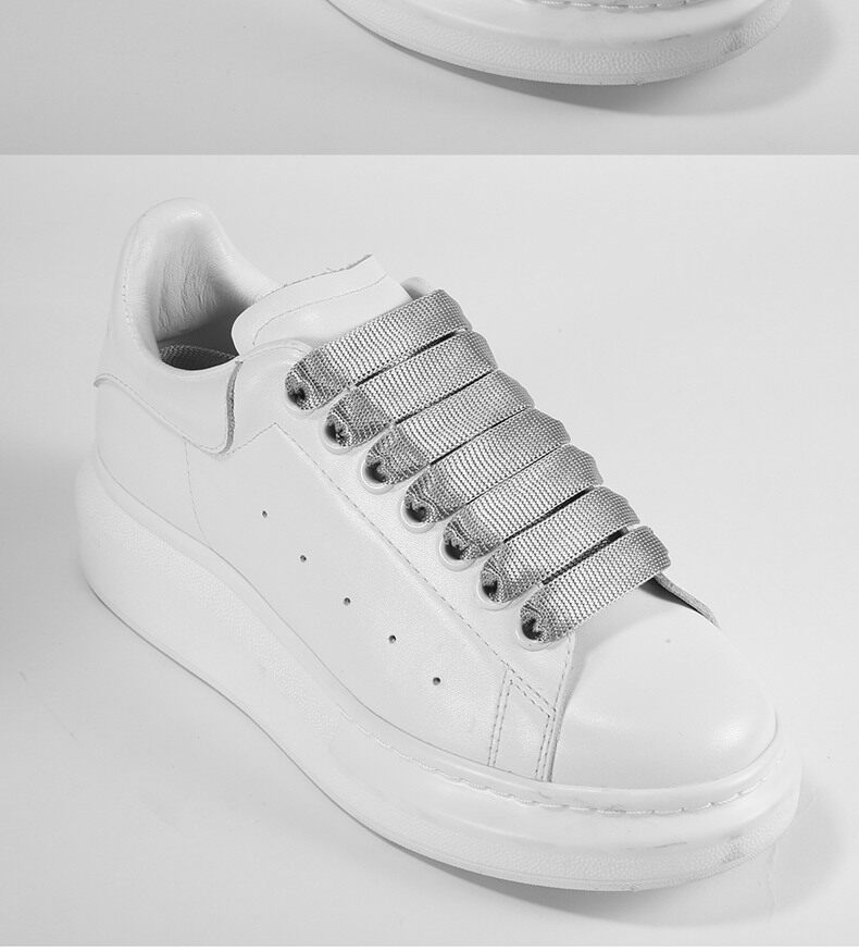 征徒 Подлинная адаптация МакКуина МакКуина маленькая белая ширина обуви шнурки с плоским белым золотом и серебряными специальными шнурками