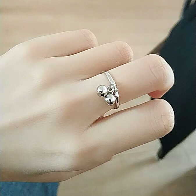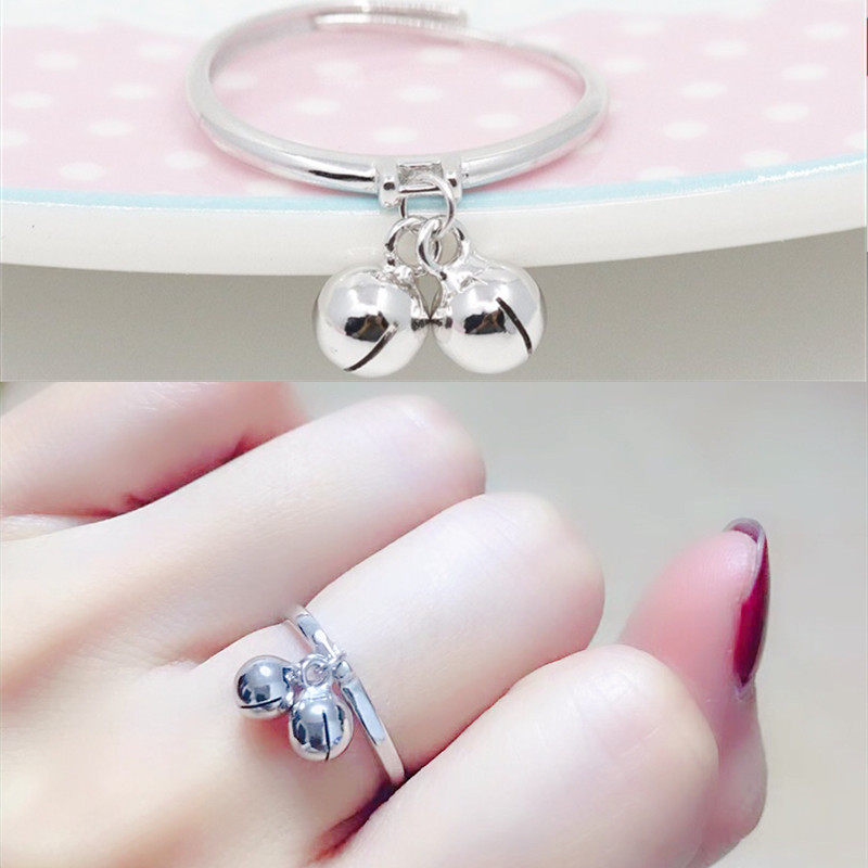 Колокольчик, регулируемое изысканное милое кольцо, серебро 925 пробы, со звуком, японские и корейские