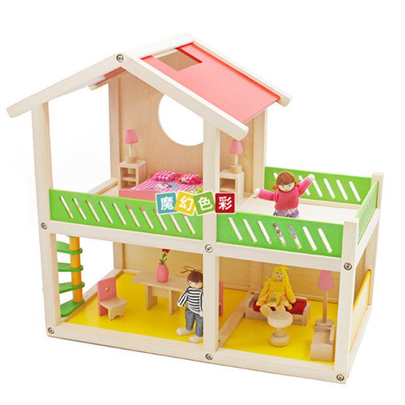 Деревянная игрушка, семейная хижина, вилла, кукольный домик, раннее развитие, 3-6-9 лет