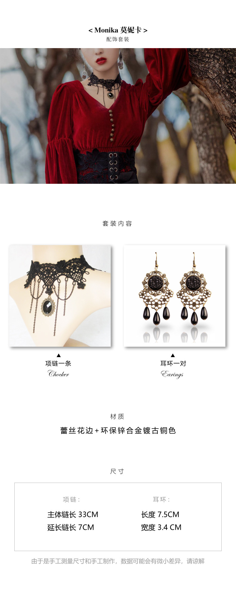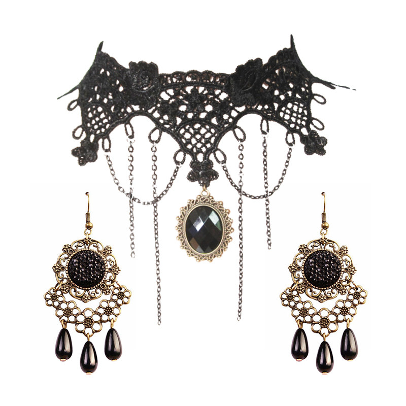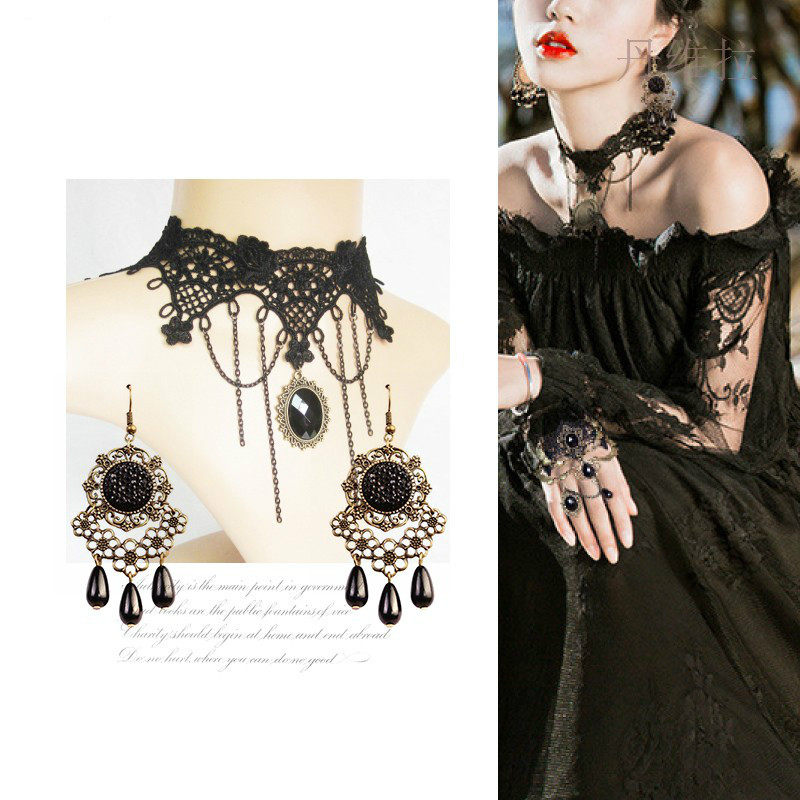 Аксессуар, ожерелье, ретро клипсы, комплект, цепочка до ключиц, стиль Лолита