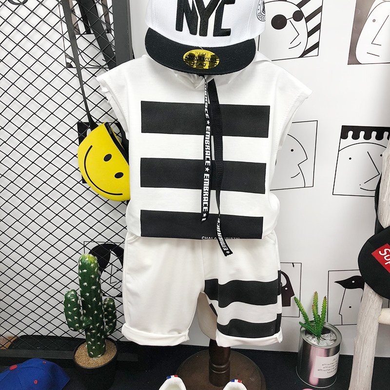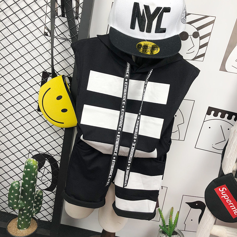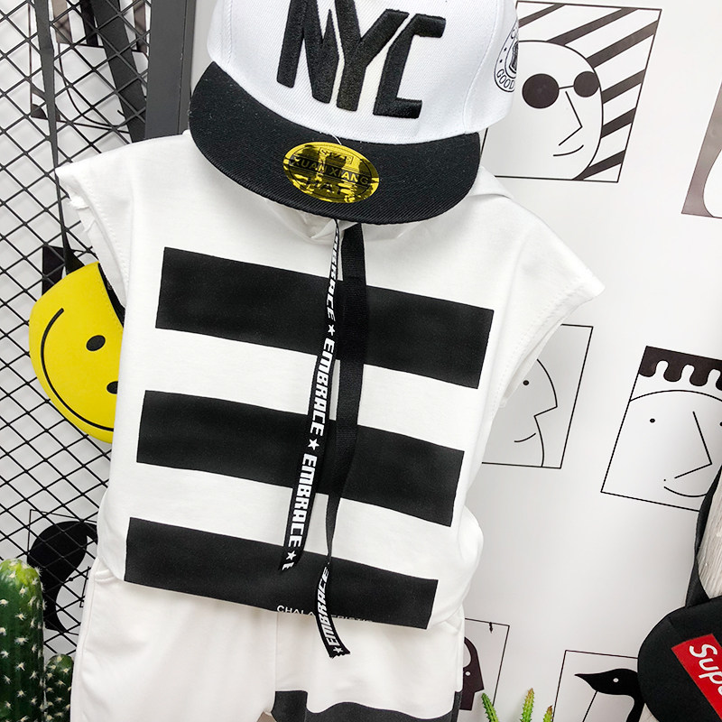 Летняя одежда без рукавов, жилет, летний комплект, детская футболка, в корейском стиле