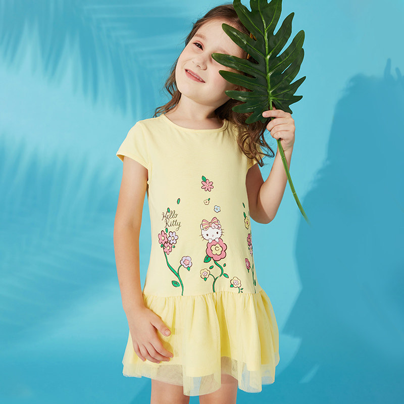 Hello Kitty, детская летняя одежда с круглым воротником, платье с коротким рукавом для отдыха, детская одежда, 2020, в западном стиле